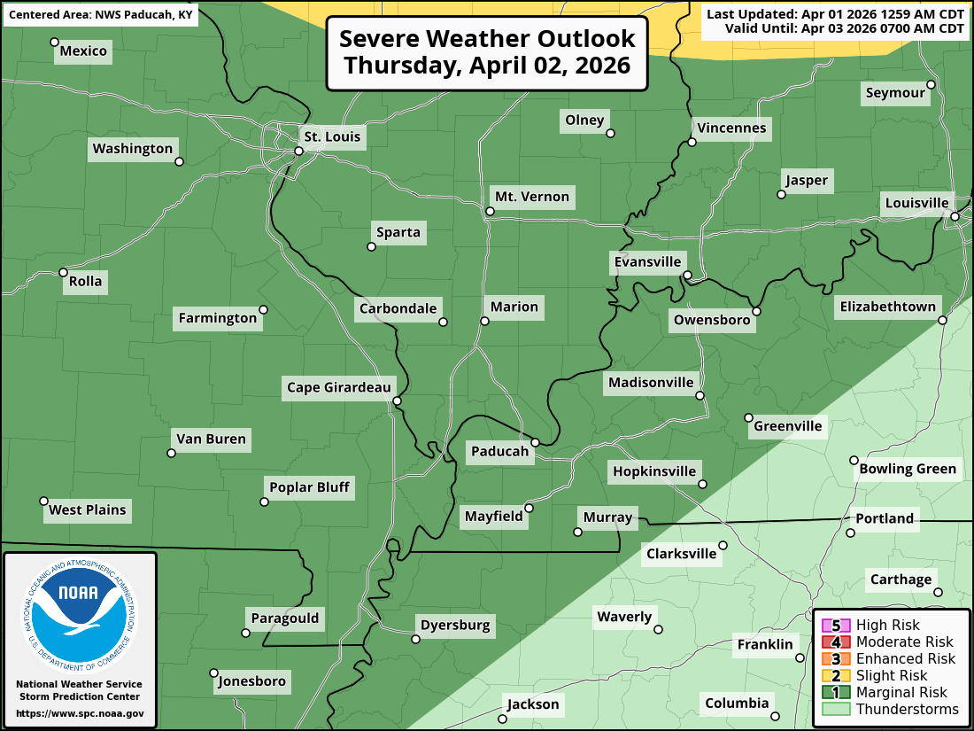 The severe weather threat has increased a bit for Thursday afternoon and night. The primary concern will be damaging wind and hail. A low tornado risk.