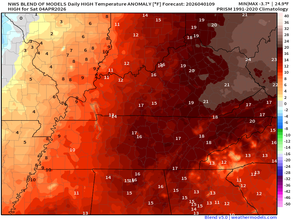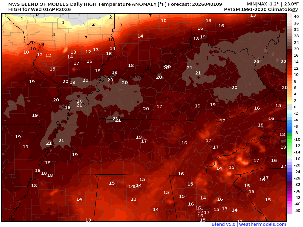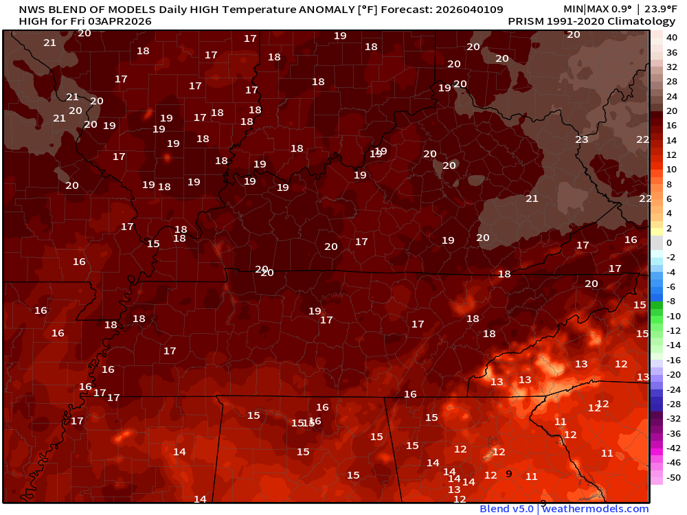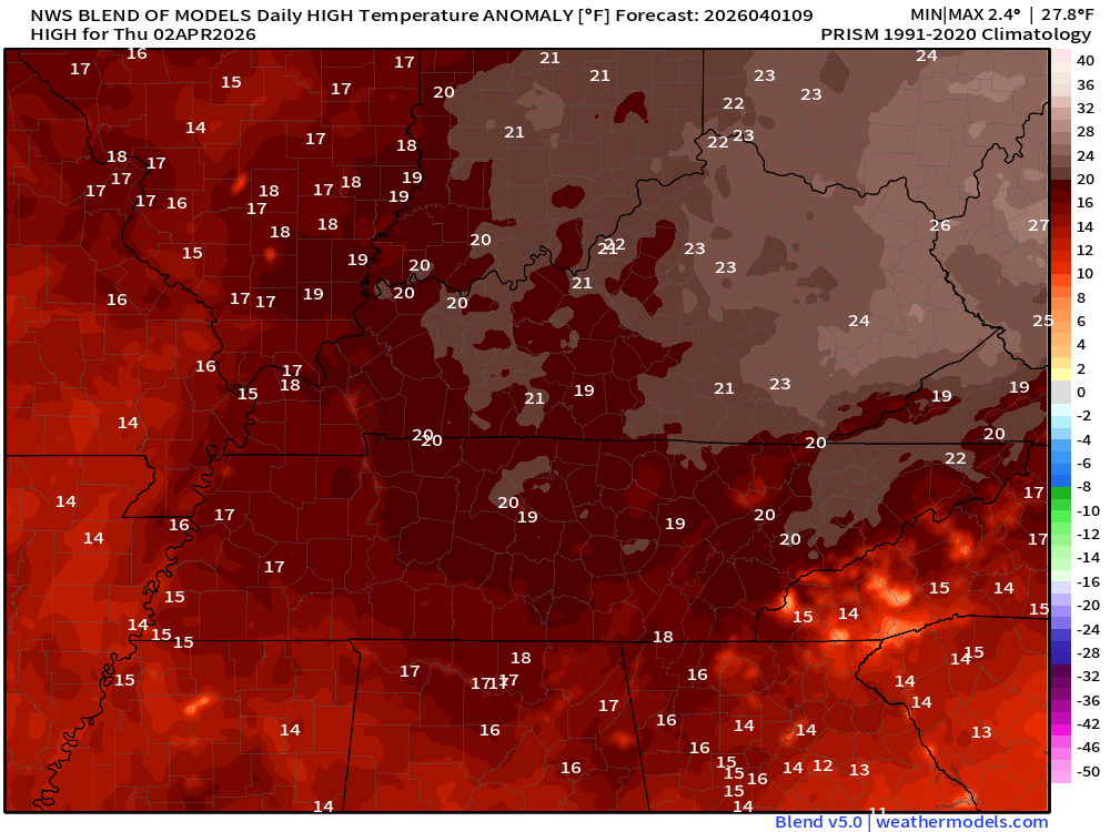 - Warm through Friday with temperatures 10 to 20+ degrees above average.