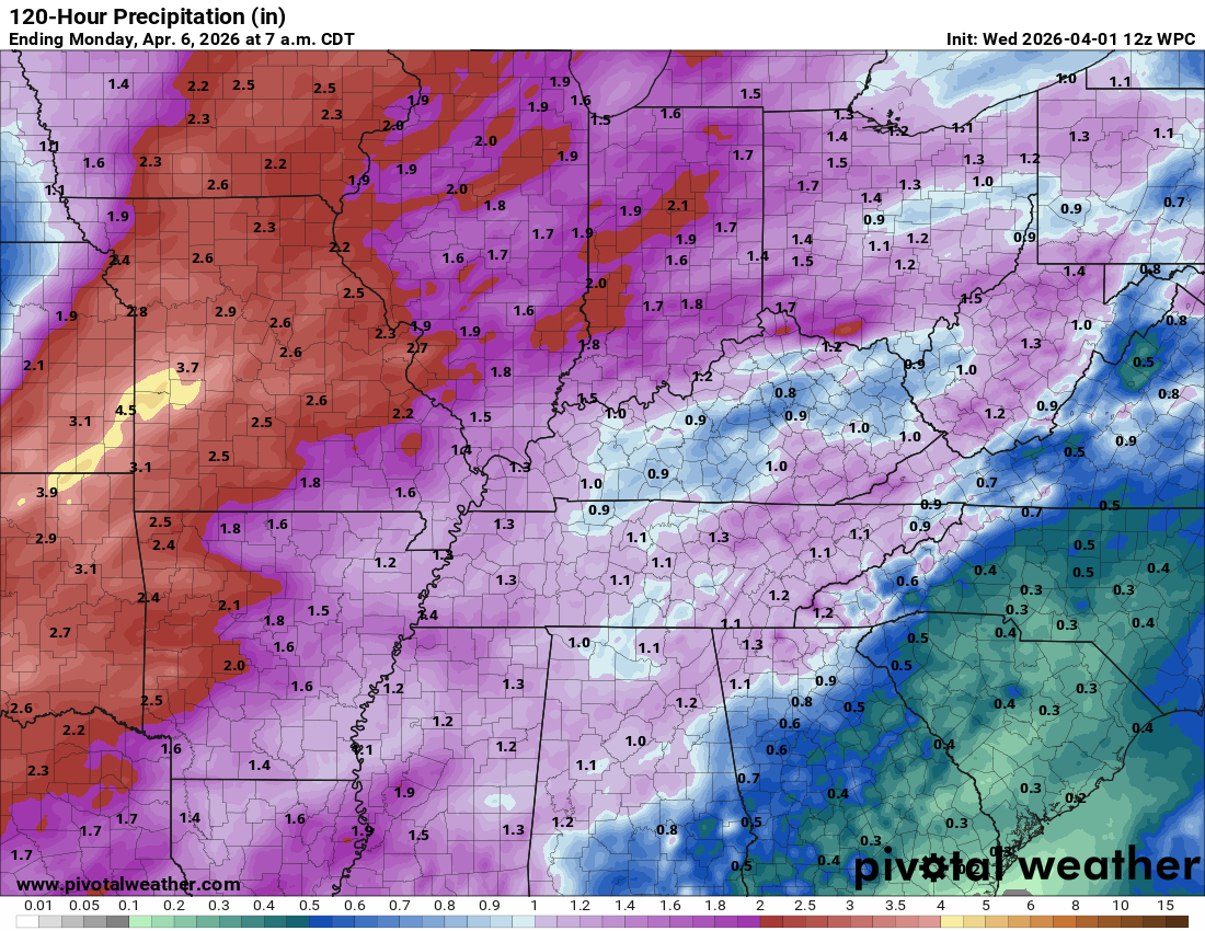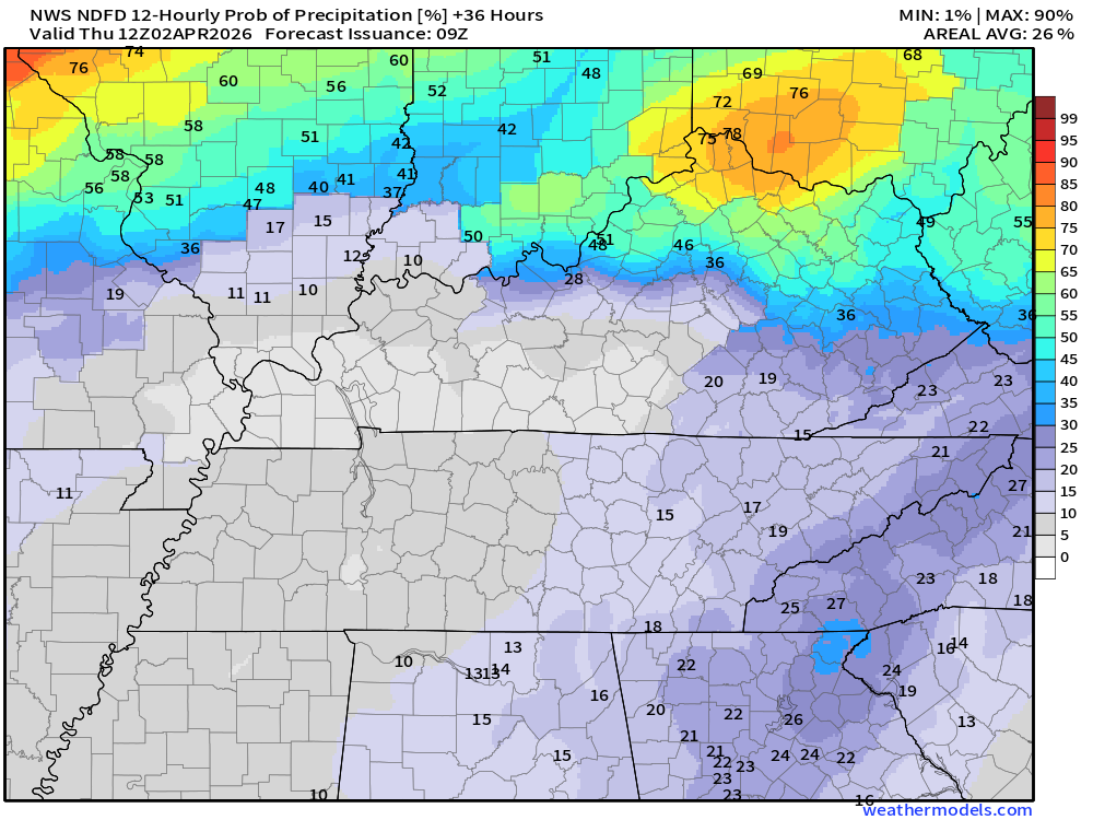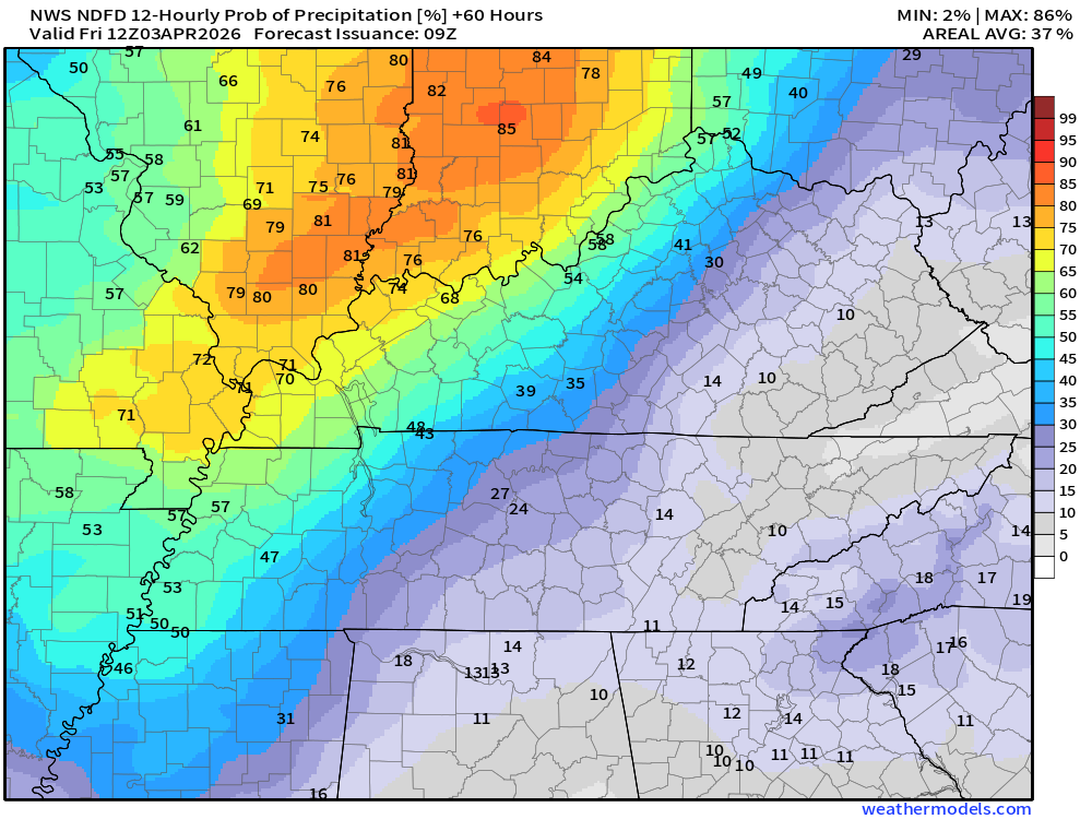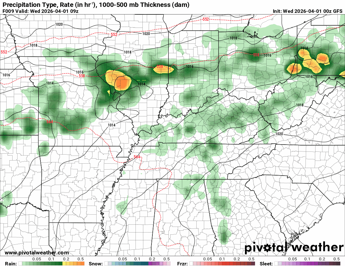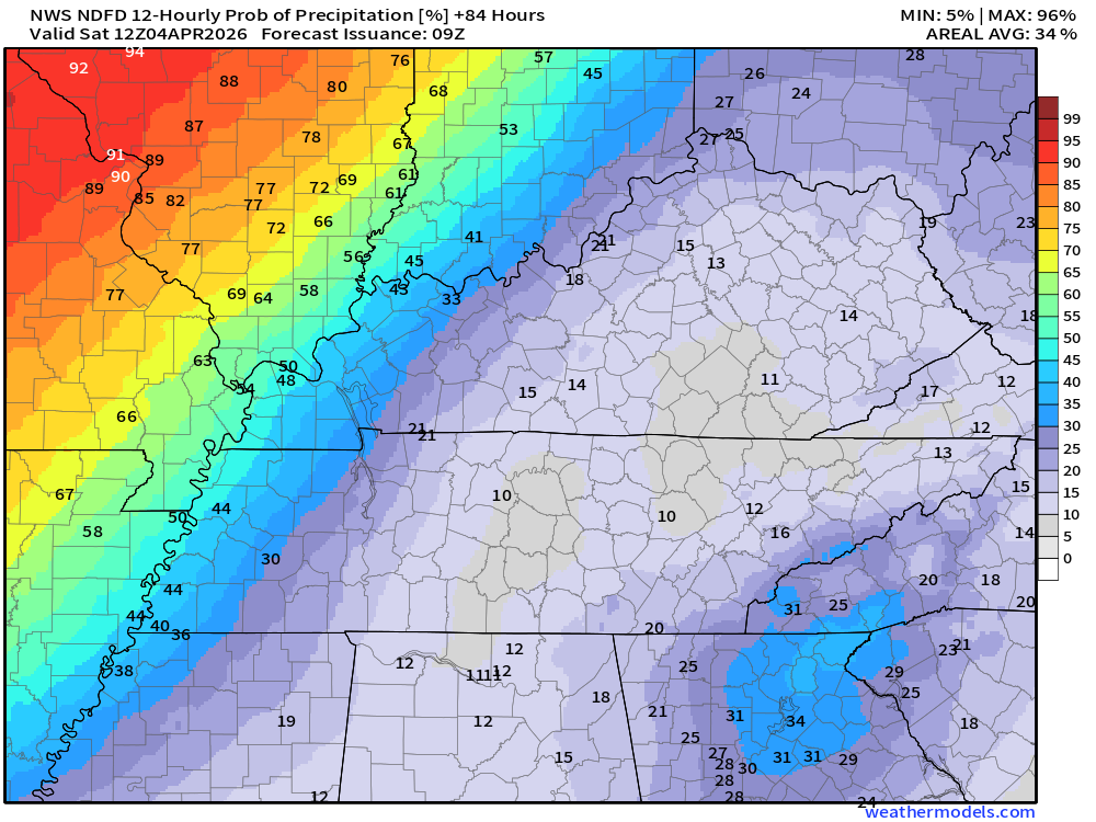 There is some indication that my eastern counties may receive less than one inch. That would be Owensboro south to LBL and then eastward from there.