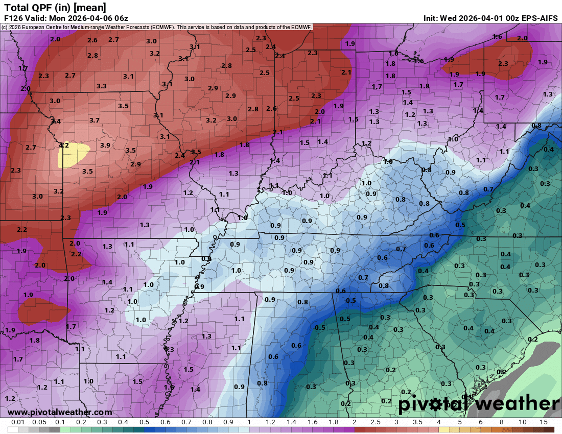 Here is the latest EC AI model rainfall totals.Double-click the graphics to enlarge them. The NOAA/WPC forecast is a bit higher than the EC AI model.Again, notice the lower area over portions of Kentucky and Tennessee. The bootheel, as well.