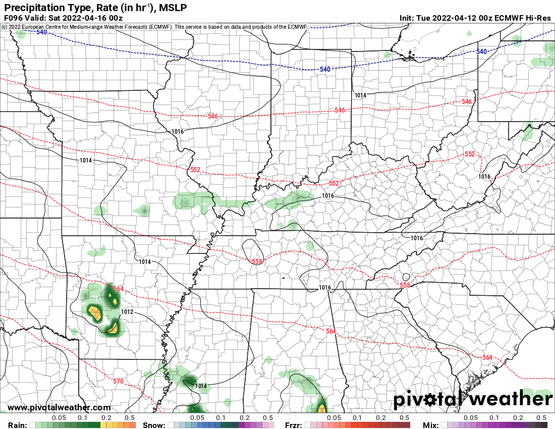 What is the chance of precipitation? MO Bootheel ~ 60% / the rest of SE MO ~ 60% / I-64 Corridor South IL ~ 60% / the rest of South IL ~ 60% / West KY ~ 60% / NW KY (near Indiana border) ~ 40% / NW TN ~ 60%