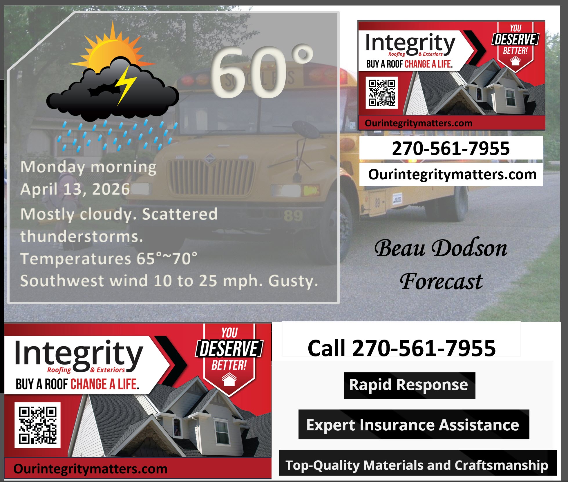 ⛈️ Roof or gutter damage from recent storms? Today’s weather is sponsored by Integrity Roofing. Check out their website at this link https://www.ourintegritymatters.com/