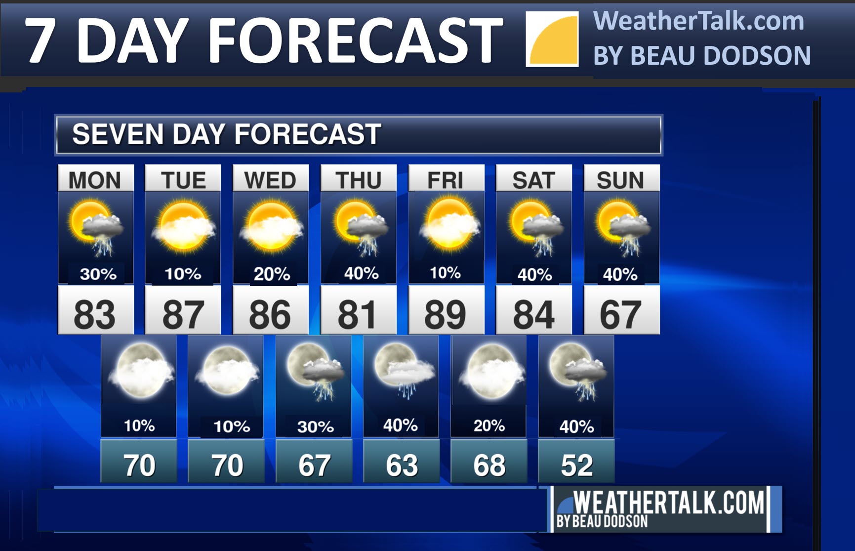 - On and off shower and thunderstorm chances. See the rain graphics below.