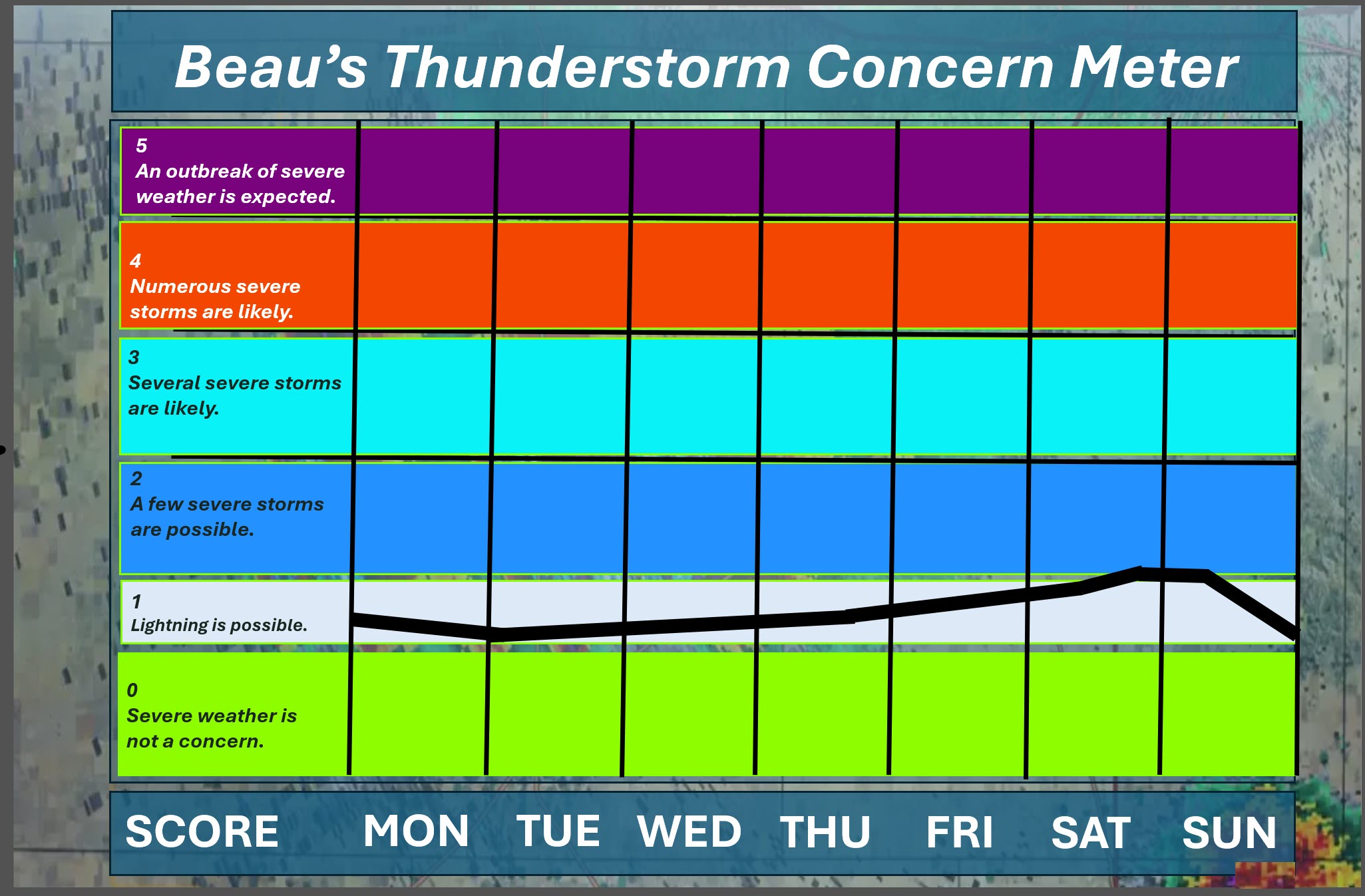 1. Is lightning in the forecast? POSSIBLE. Lightning is possible into the upcoming weekend. On and off chances.