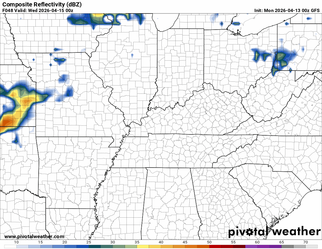 This model pops most of the storms east northeast of our region (on Thursday PM)