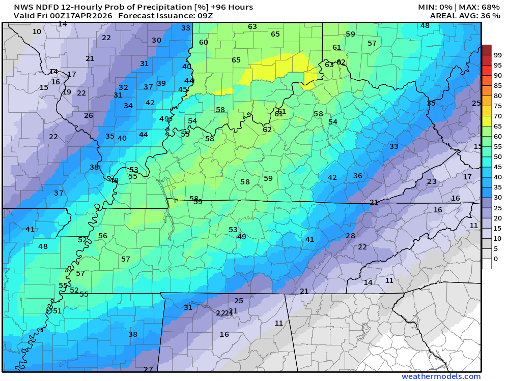 - At this time, there are no strong signals for widespread severe weather through Friday. Monitor updates.