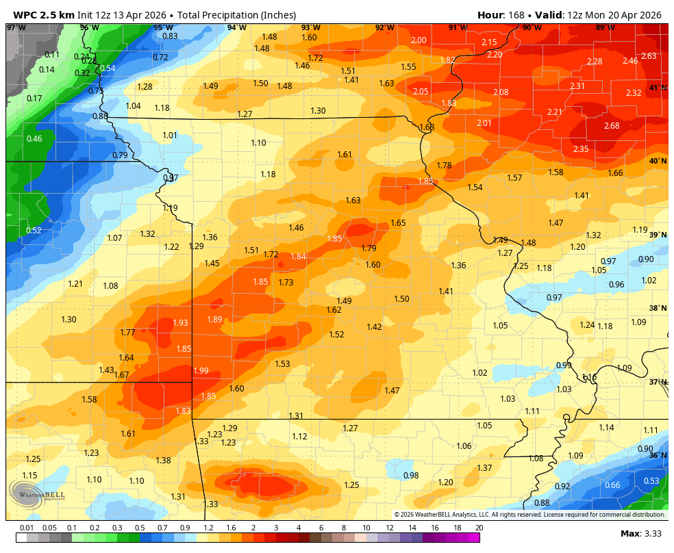 Average precipitation during this time period ranges from 1.00″ to 1.20″
