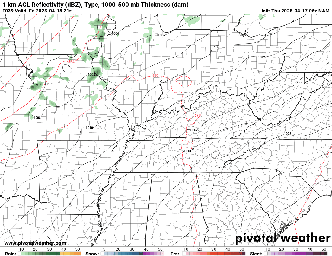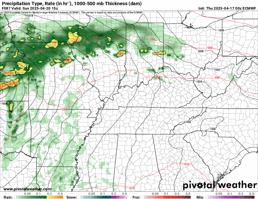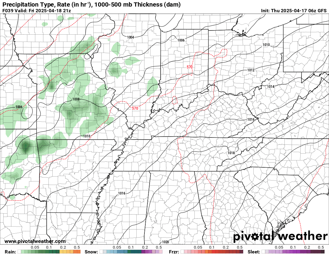 Somewhat lower totals over Kentucky and Tennessee.