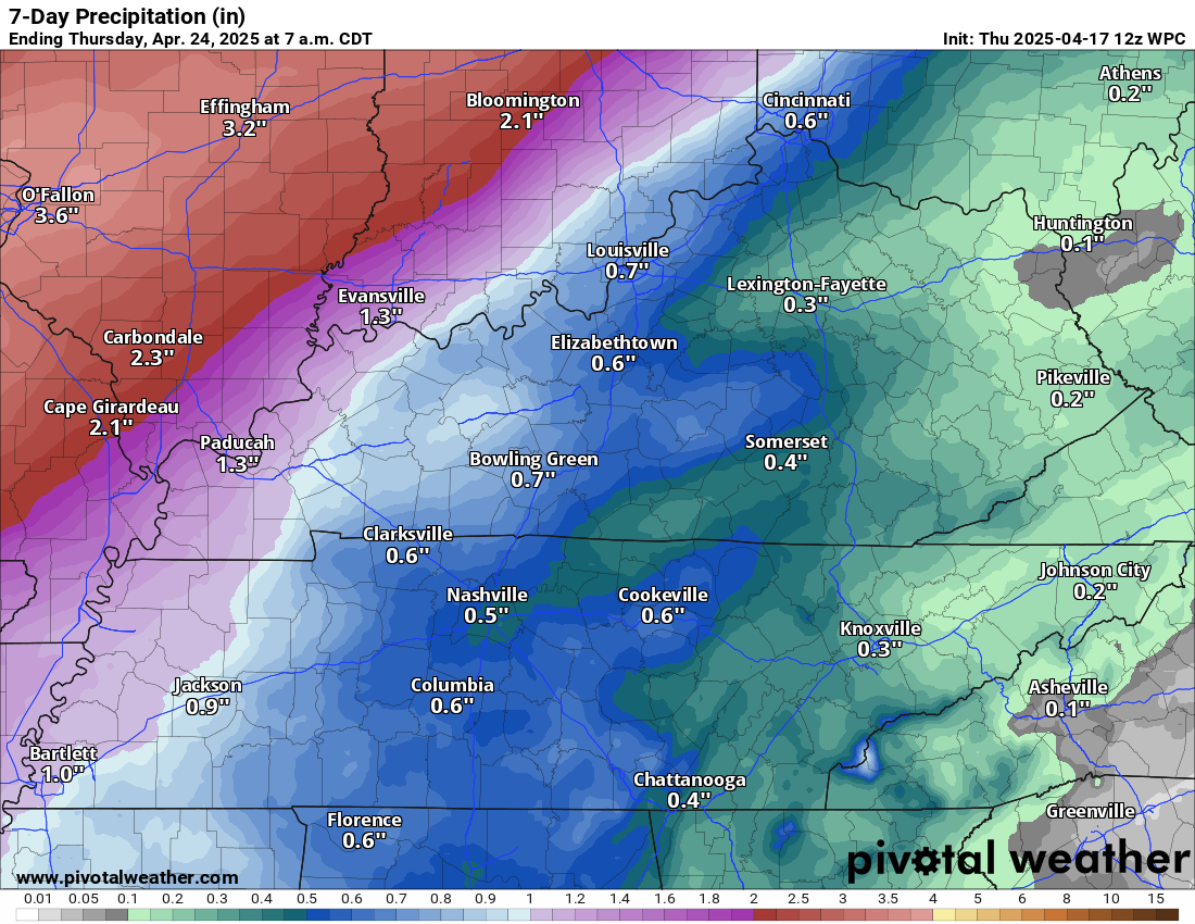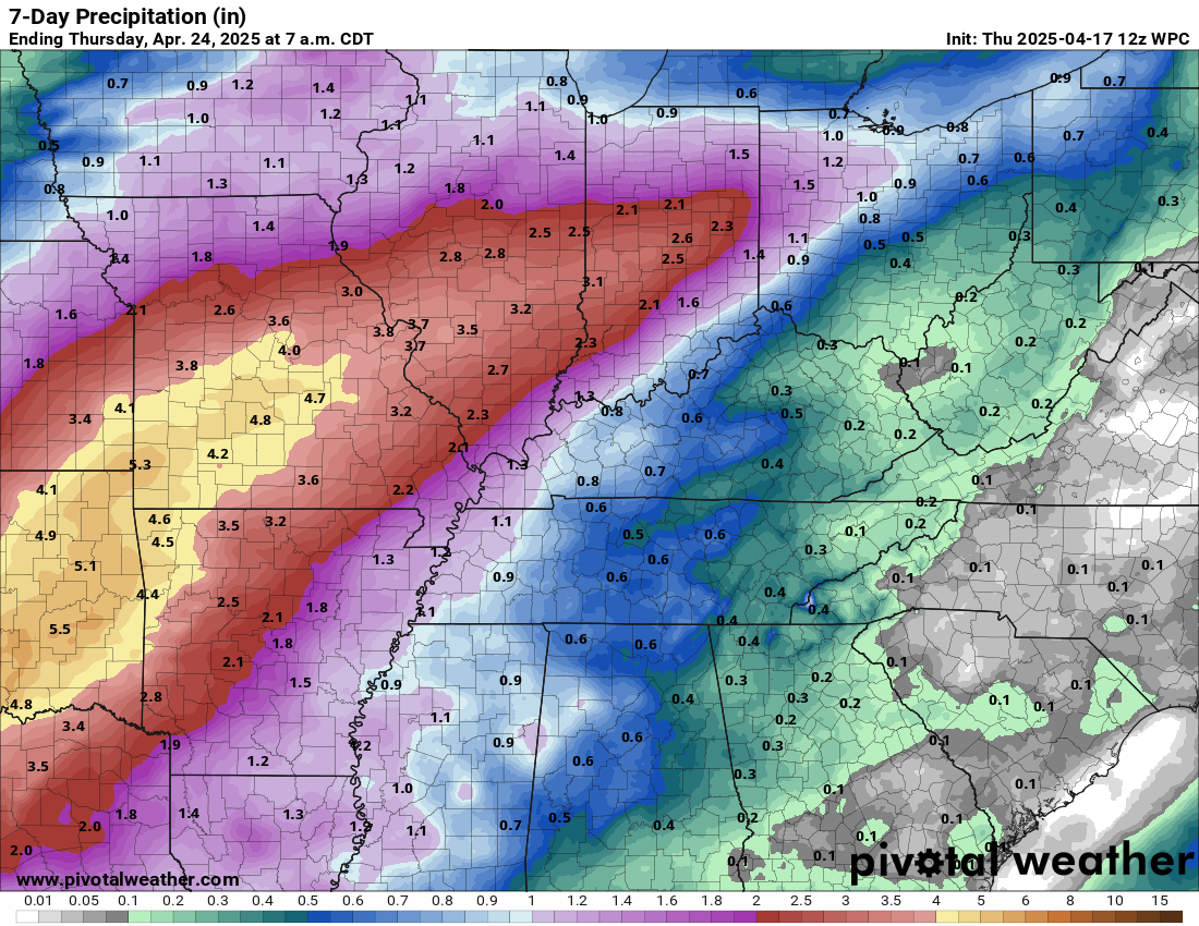 Here is the seven-day rainfall outlook.  The heavier rainfall totals should be across southeast Missouri and southern Illinois.