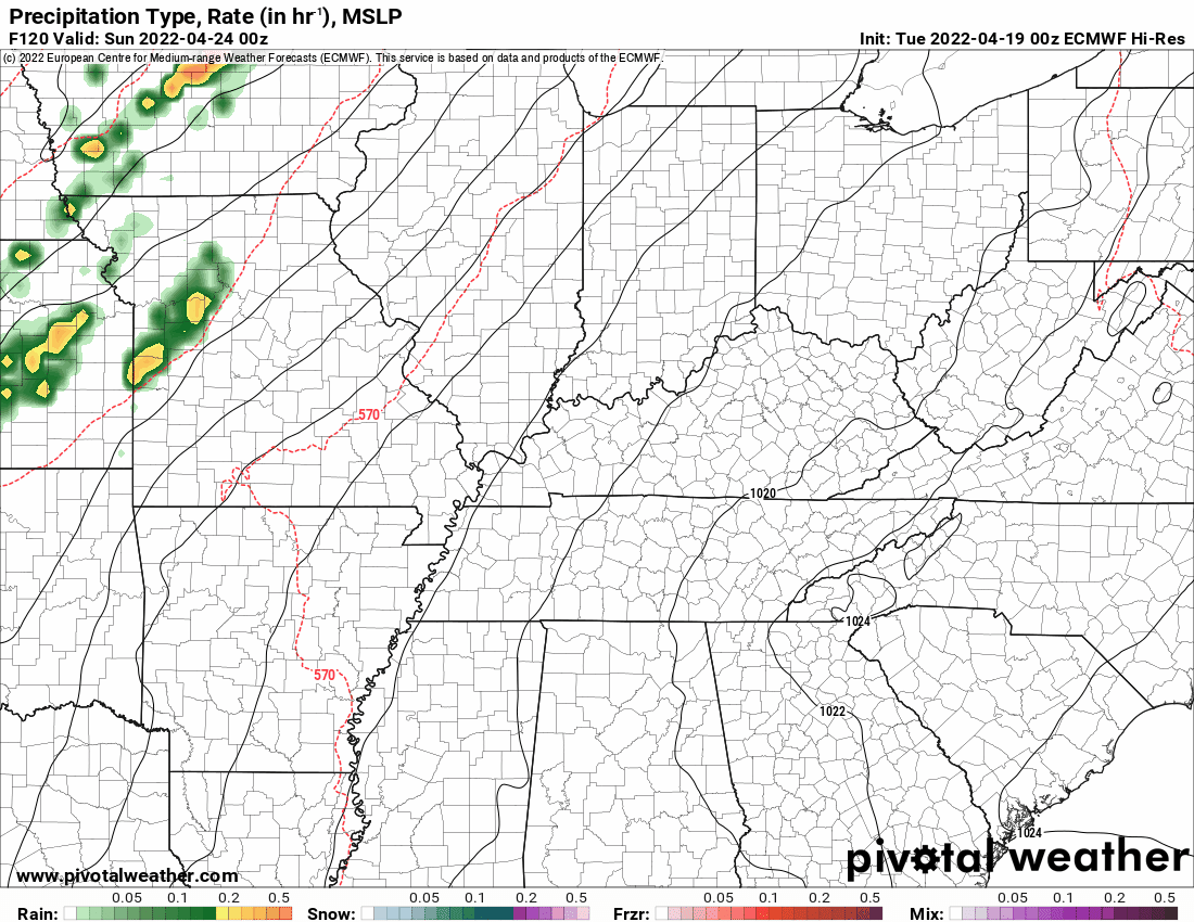 What is the chance of precipitation? MO Bootheel ~ 20% / the rest of SE MO ~ 40% / I-64 Corridor South IL ~ 30% / the rest of South IL ~ 20% / West KY ~ 20% / NW KY (near Indiana border) ~ 10% / NW TN ~ 20%