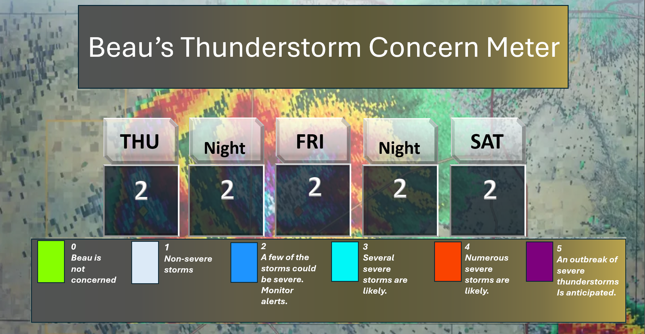 - A few of the thunderstorms could be intense or severe this afternoon and tonight. I will monitor Friday and Saturday.