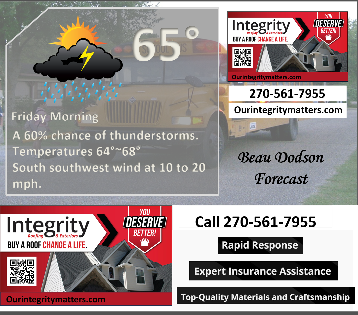 ⛈️ Roof or gutter damage from recent storms? Today’s weather is sponsored by Integrity Roofing. Check out their website at this link https://www.ourintegritymatters.com/