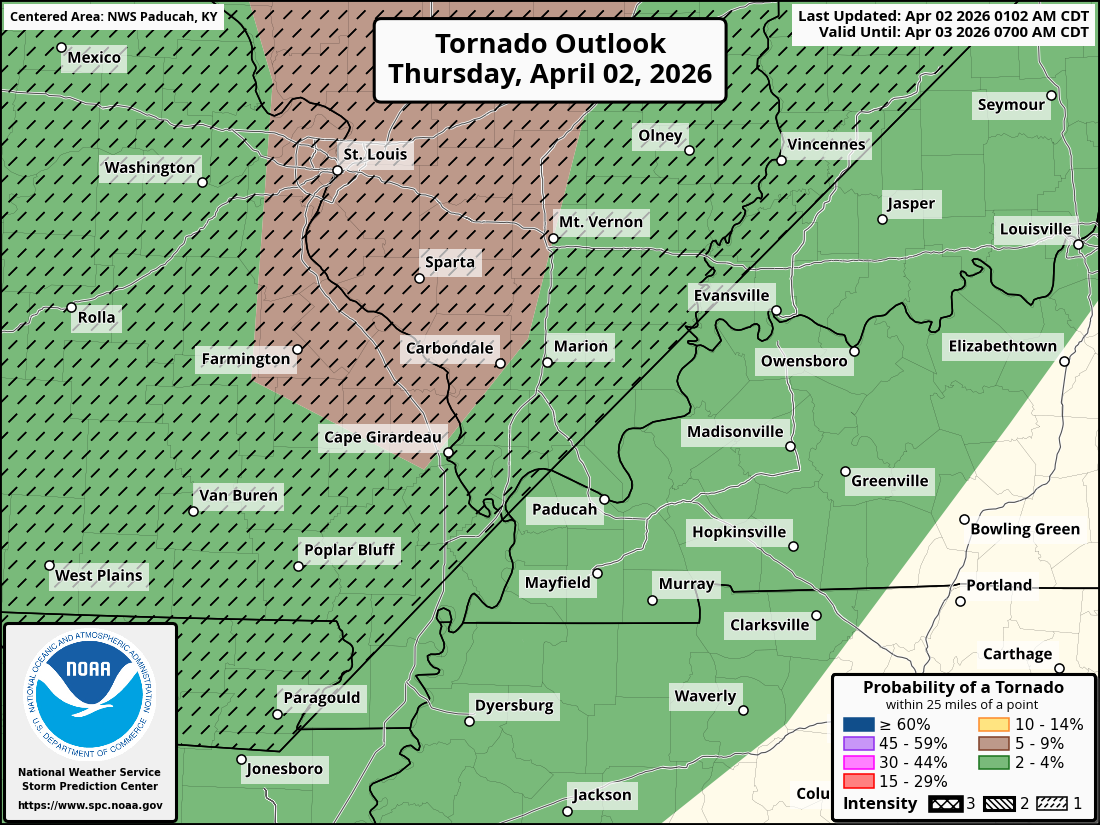 I did adjust their graphic on the tornado threat. They have it at moderate, but I changed it to low.