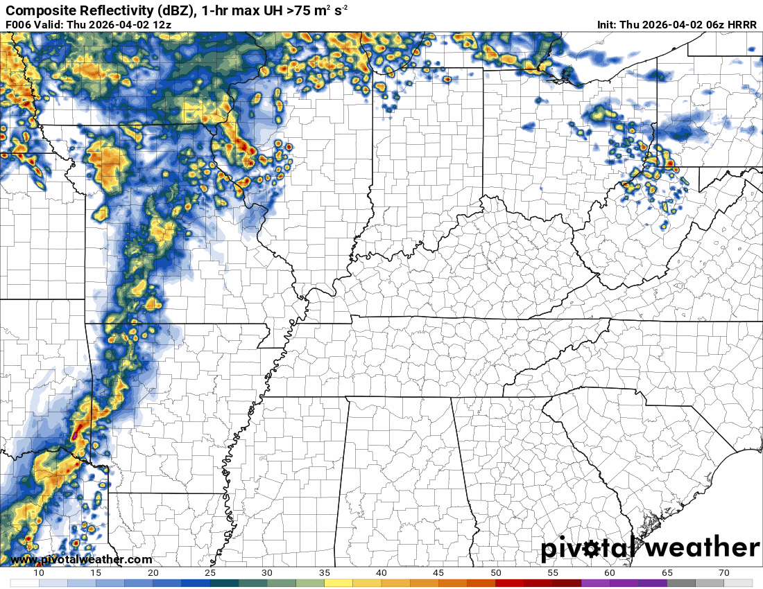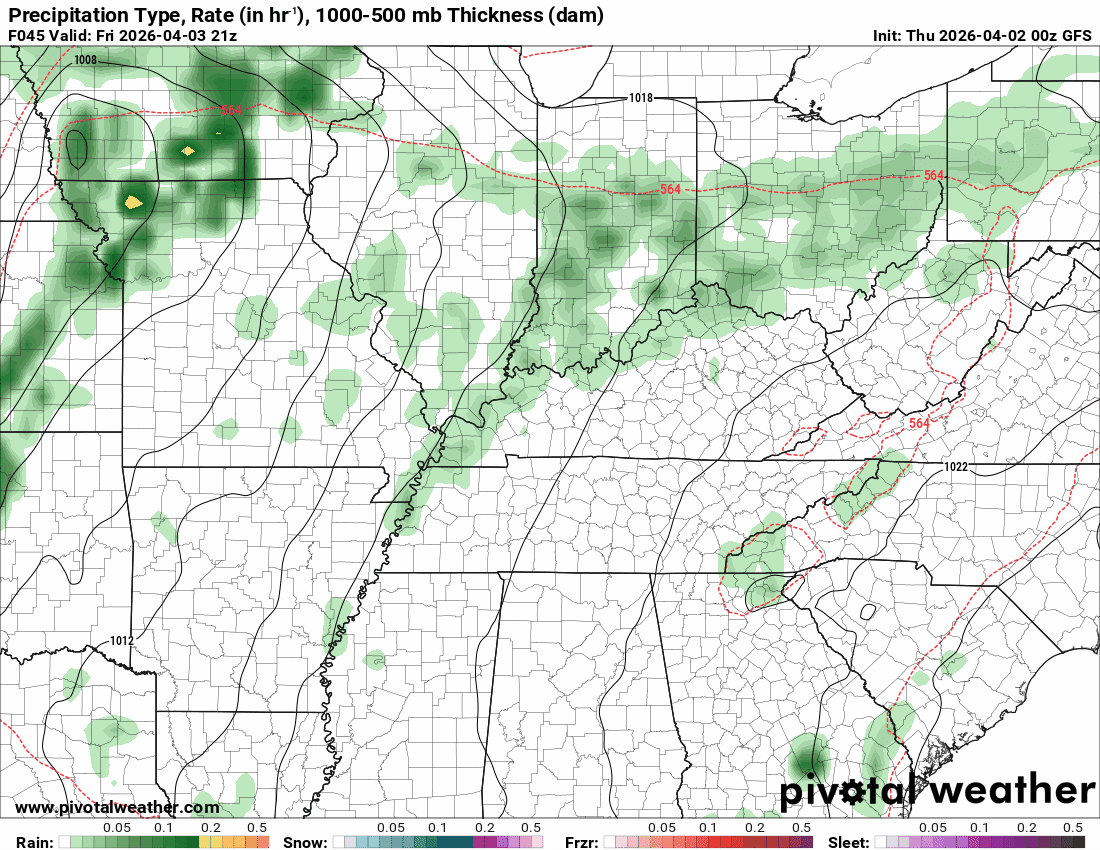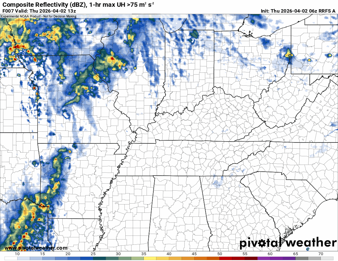 This model pops most of the storms east northeast of our region (on Thursday PM)