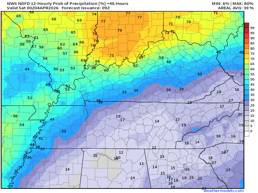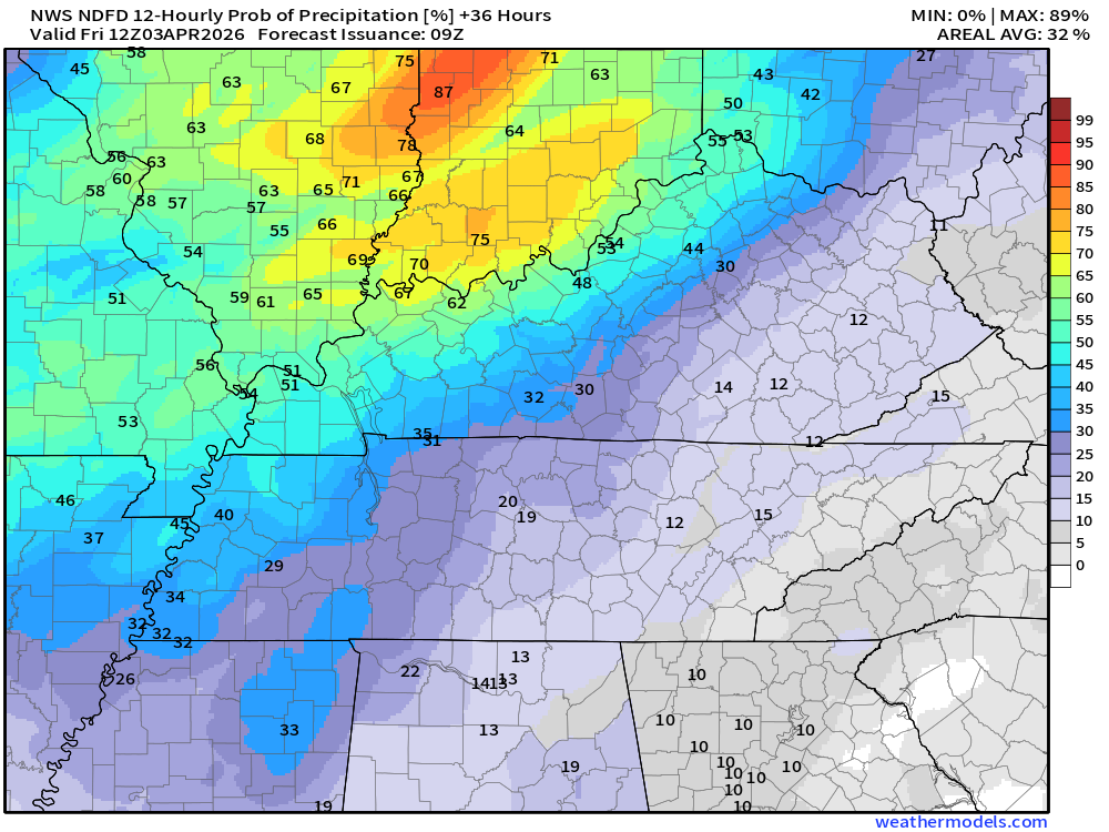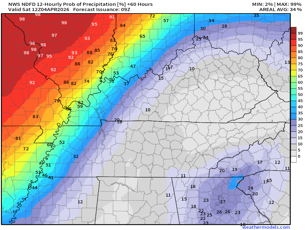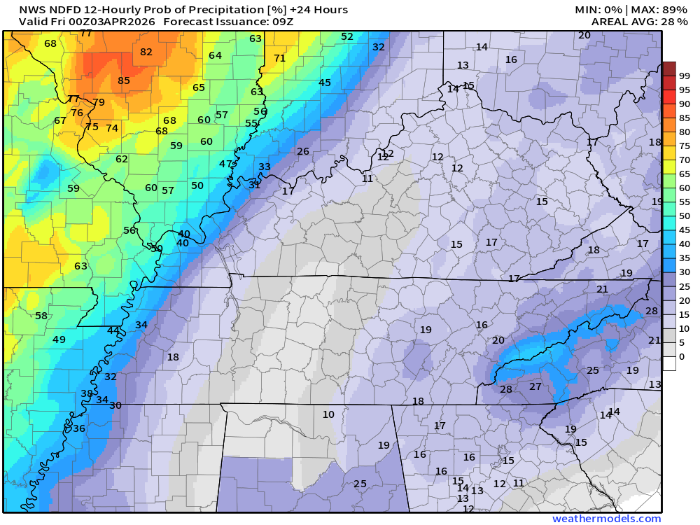 There is some indication that my eastern counties may receive less than one inch. That would be Owensboro south to LBL and then eastward from there.