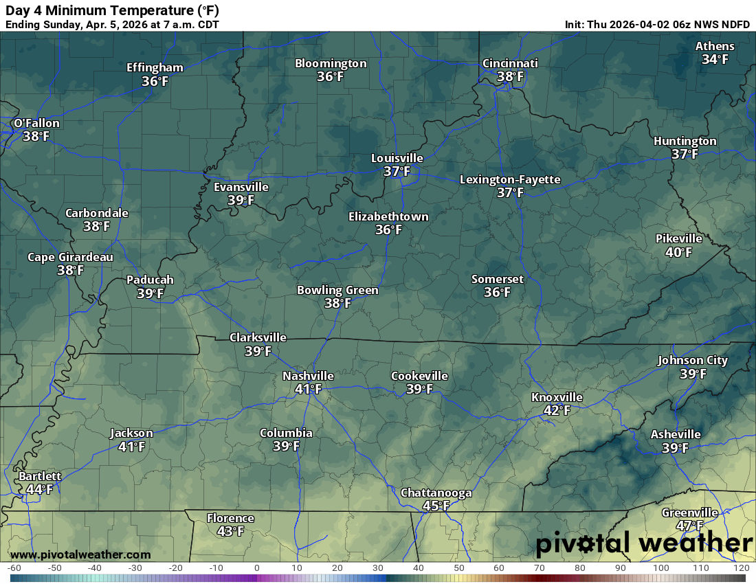 Again, notice the lower area over portions of southeast Illinois, Kentucky, and Tennessee. The bootheel, as well.