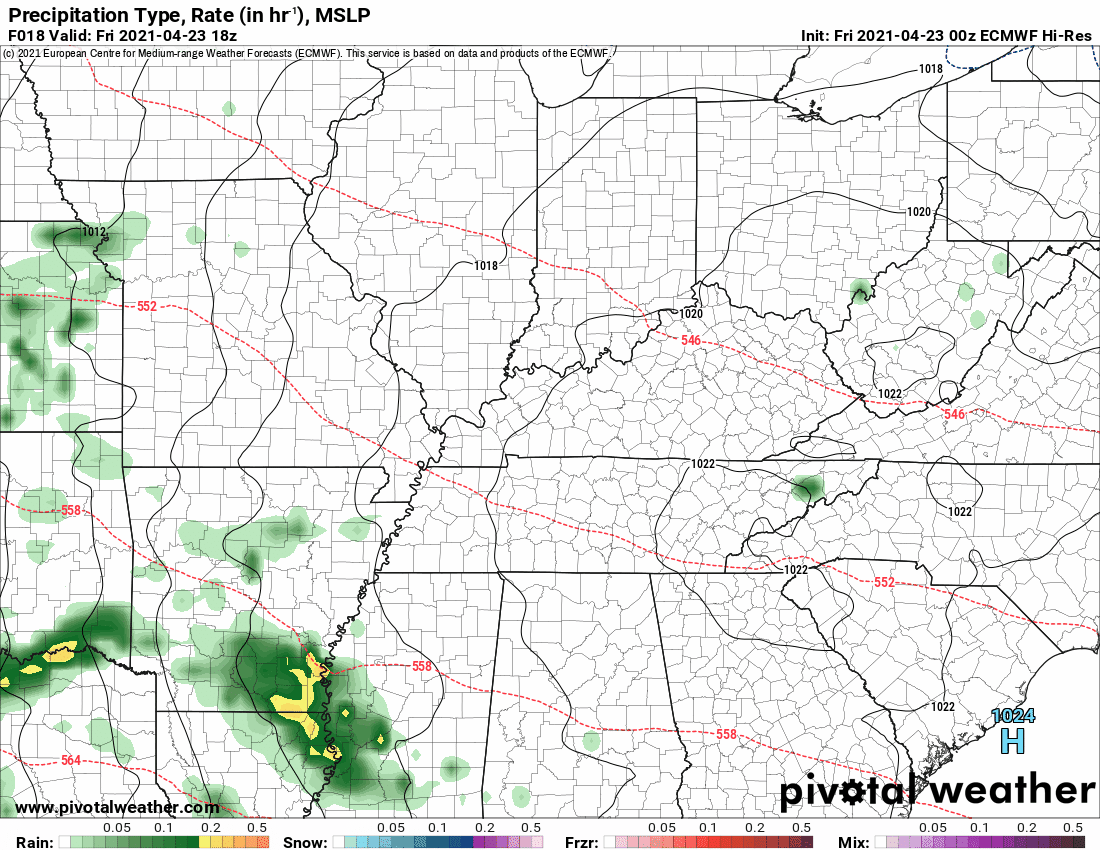 Temperature range: MO Bootheel 60° to 62° / SE MO 58° to 60° / South IL 58° to 60° / Northwest KY (near Indiana border) 58° to 60° / West KY 58° to 60° / NW TN 58° to 62°