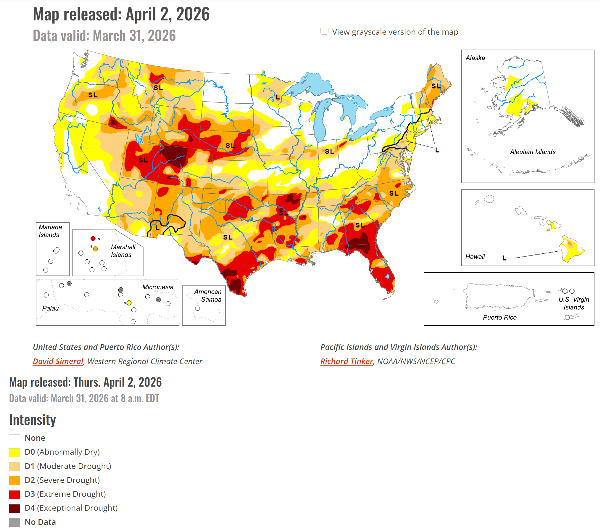 This is a very large portion of the country in drought, and for this time period, it beats April 1st of 2012.