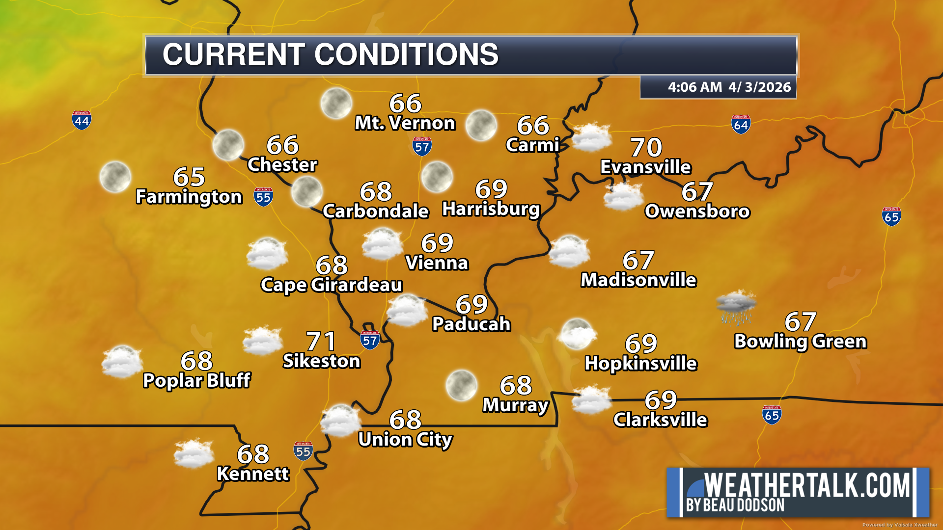 Here are the early morning current conditions. This is the 4 AM readings.