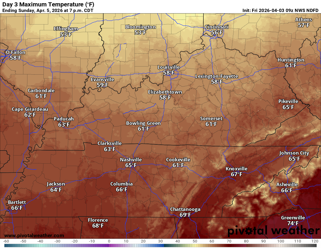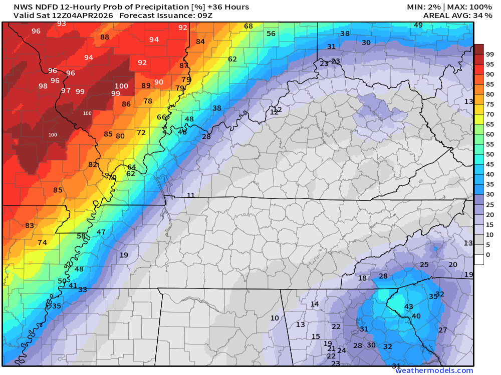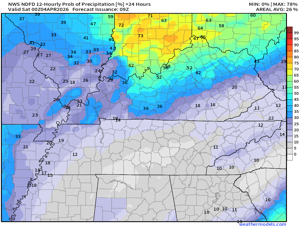 There is some indication that my eastern counties may receive less than one inch. That would be Owensboro south to LBL and then eastward from there.