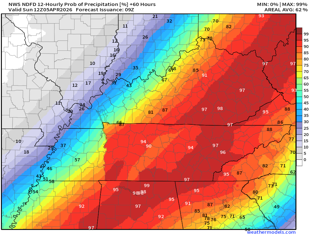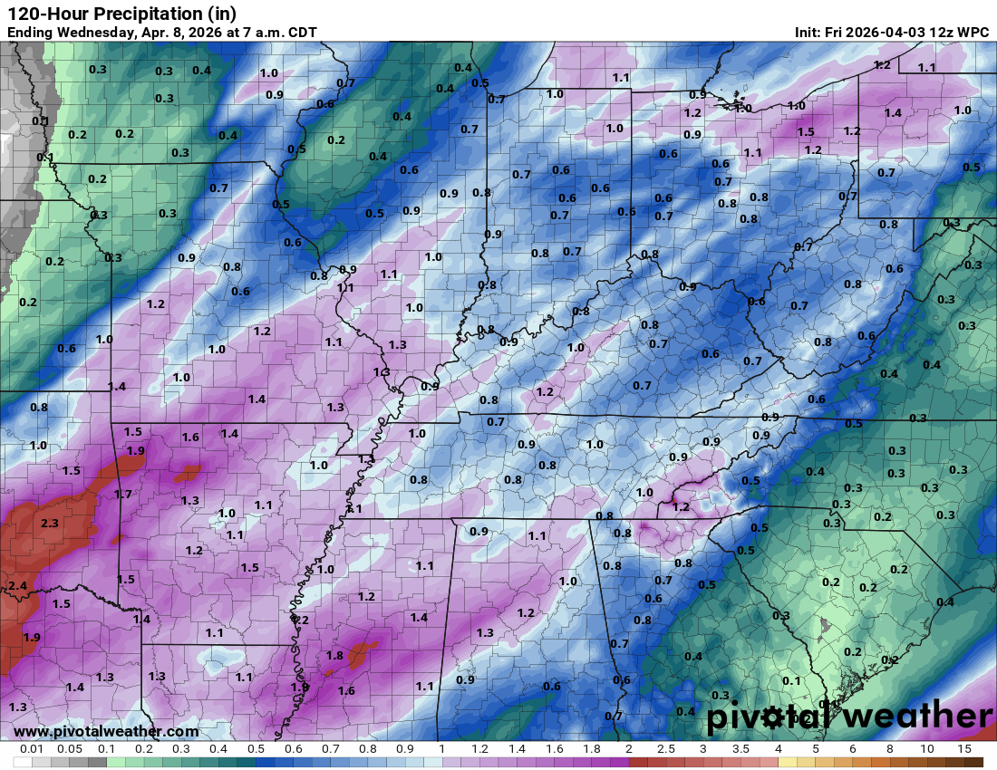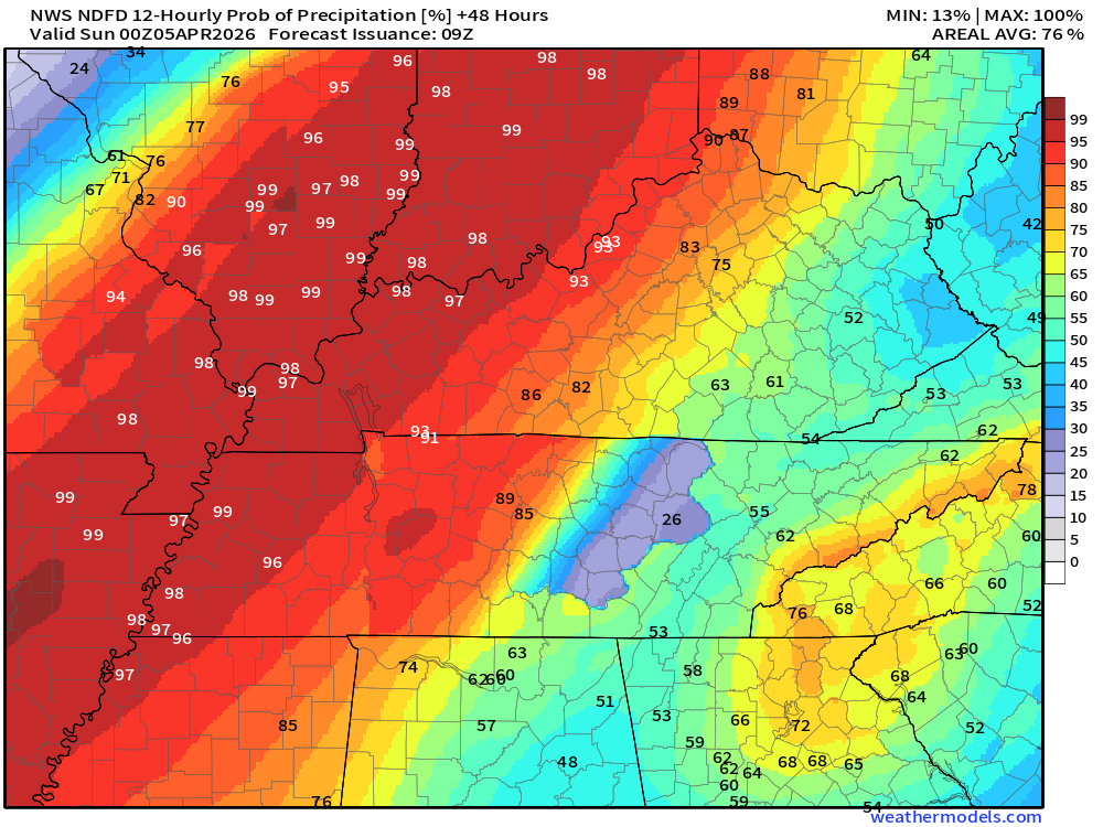 Today through late Saturday night will deliver another inch of rain to most of the region. There is hope that some areas will pick up more than an inch. Thunderstorms will enhance totals in some areas. I am hoping many areas receive at least an inch, but as mentioned over the last few days, our eastern counties may struggle to reach that amount. Let’s see how it goes.