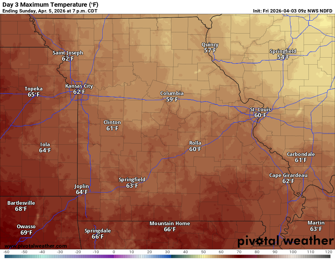 Sunday’s high temperatures. They did inch up just a tad (couple of degrees). The wind will make it feel cooler.