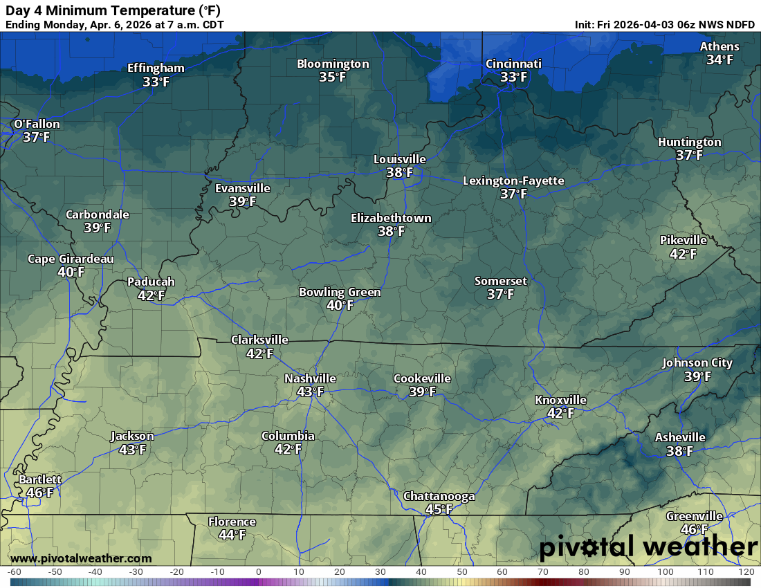 Again, notice the lower area over portions of southeast Illinois, Kentucky, and Tennessee. The bootheel, as well.