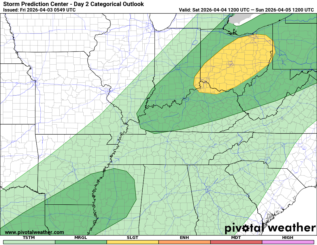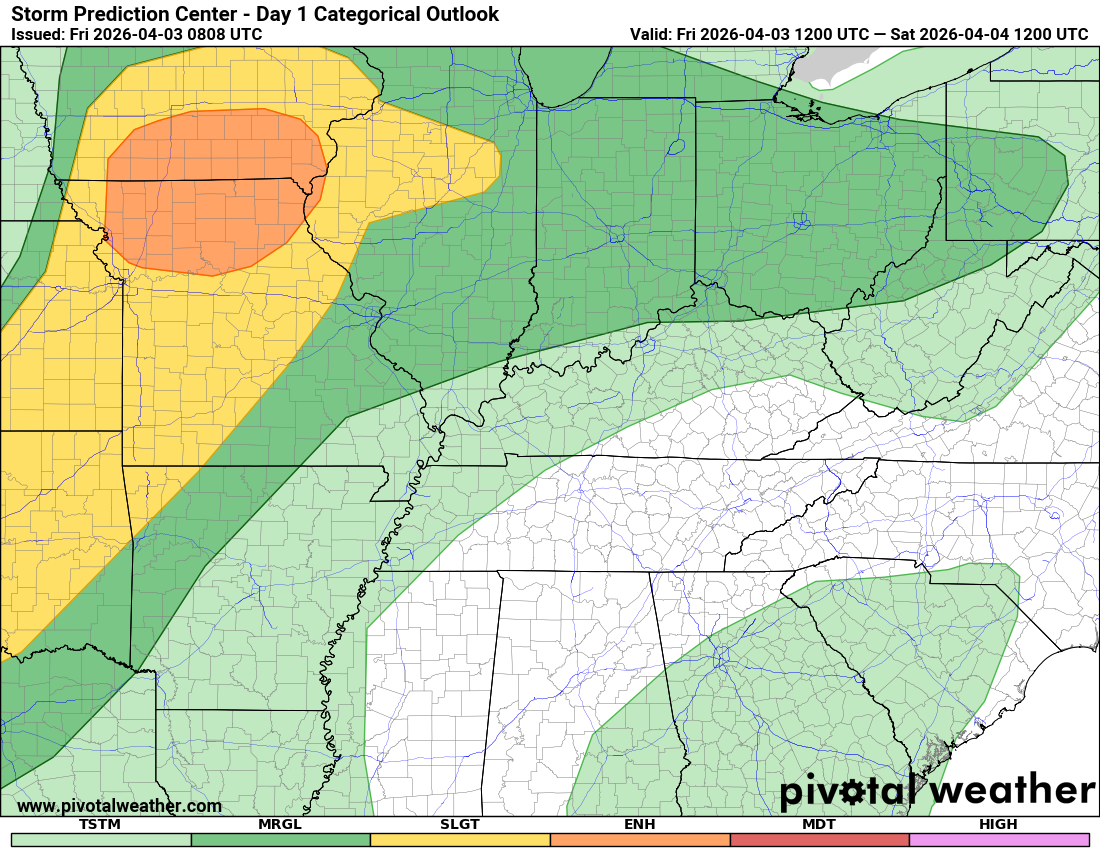 Comments: At this time, the tornado risk appears low today through Saturday evening. A few storms are anticipated, but likely not severe enough to produce tornadoes.