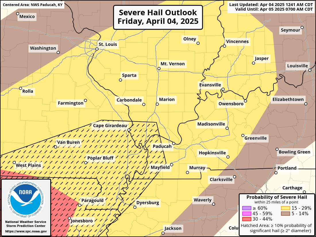 Hail risk today and tonight. Hatched means golf ball size or larger.