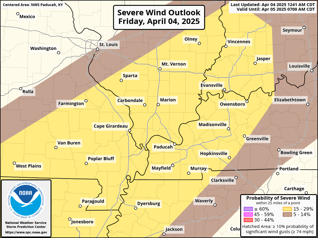 Current risk: YES. There is a risk of severe weather today, tonight, and Saturday. I can’t rule out a few tornadoes this afternoon and tonight.