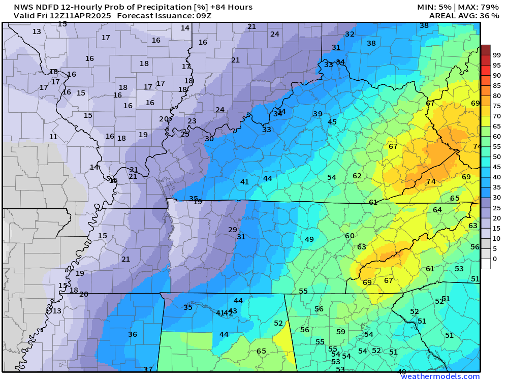 Widespread 20s and 30s north.  Widespread mid-30s to upper 30s far south.  Either way, it’s chilly.