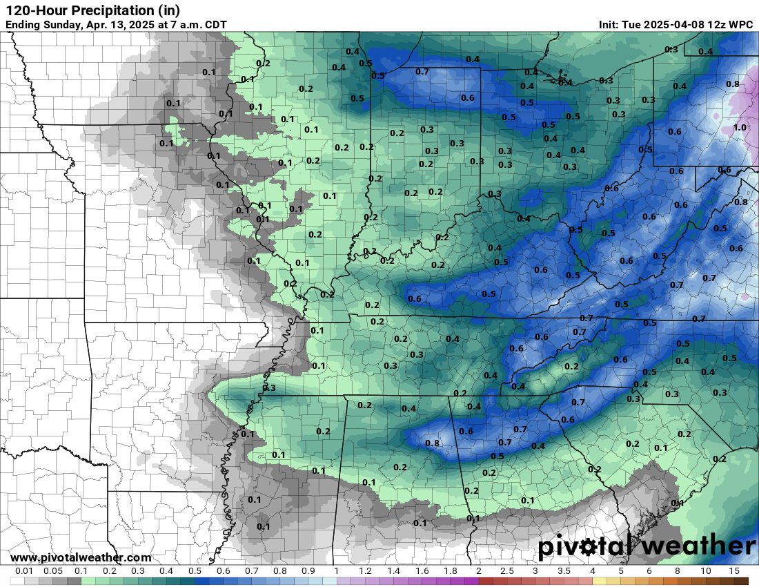 Rainfall totals will be on the light side.  This should not impact the ongoing flood situation.