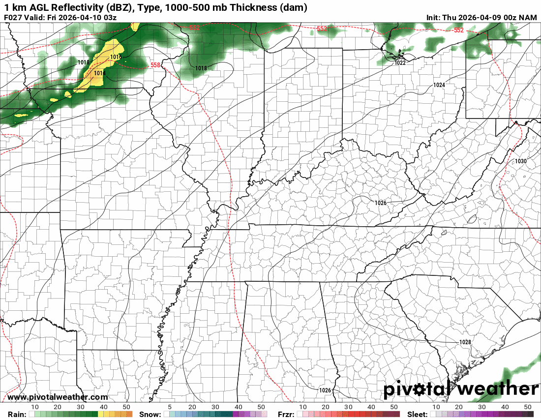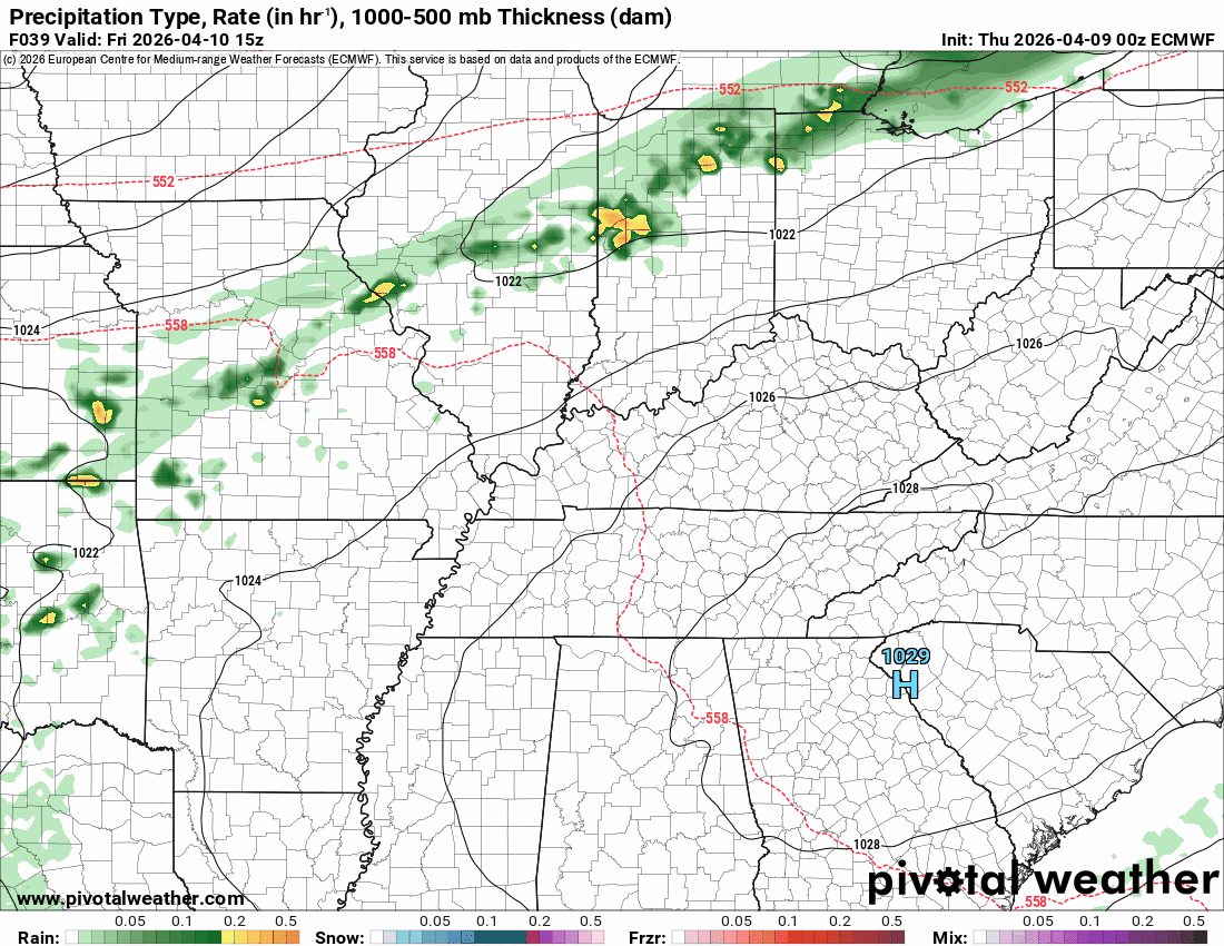 This model pops most of the storms east northeast of our region (on Thursday PM)