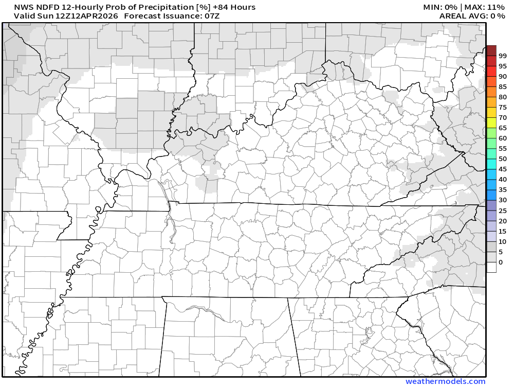 This next graphic is the % chance of rain from 7 AM Sunday to 7 PM Sunday