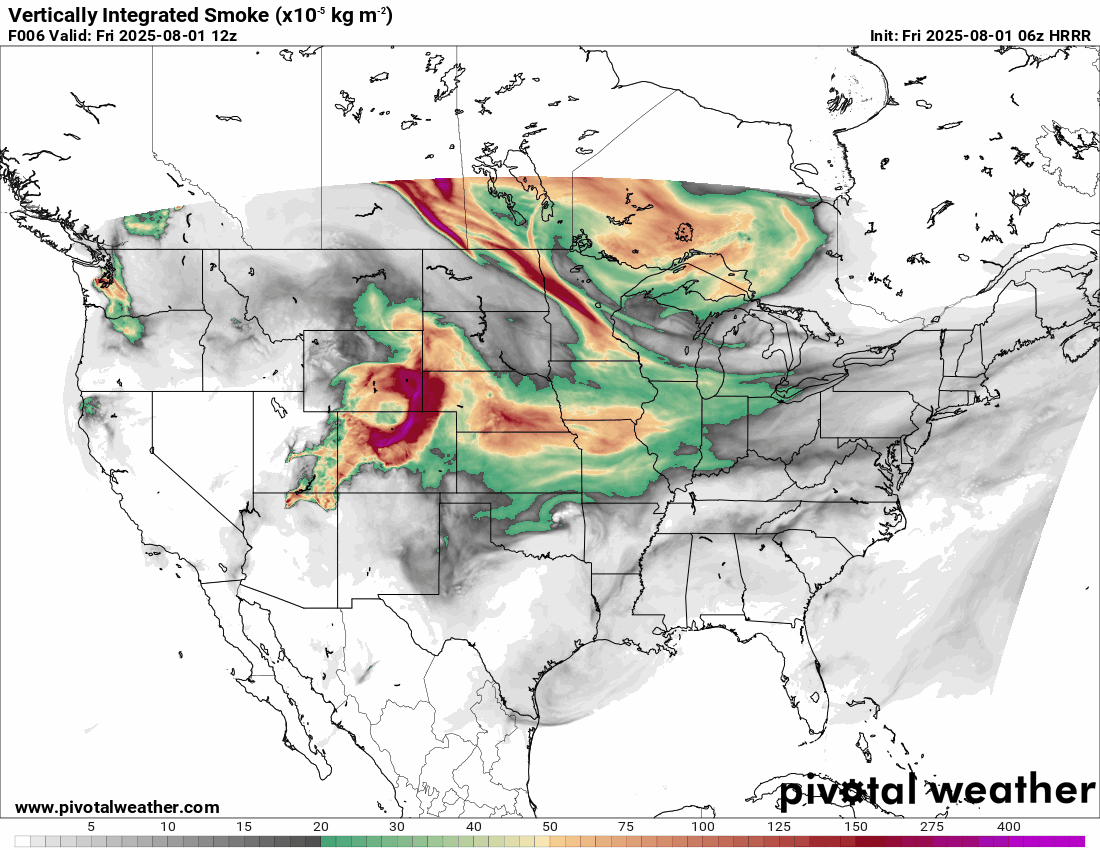 Here is the Hrrr model smoke forecast.  Again, a lot of this may be aloft.  Meaning, not at the surface.  With that said, I can’t rule out some surface smoke in some counties.