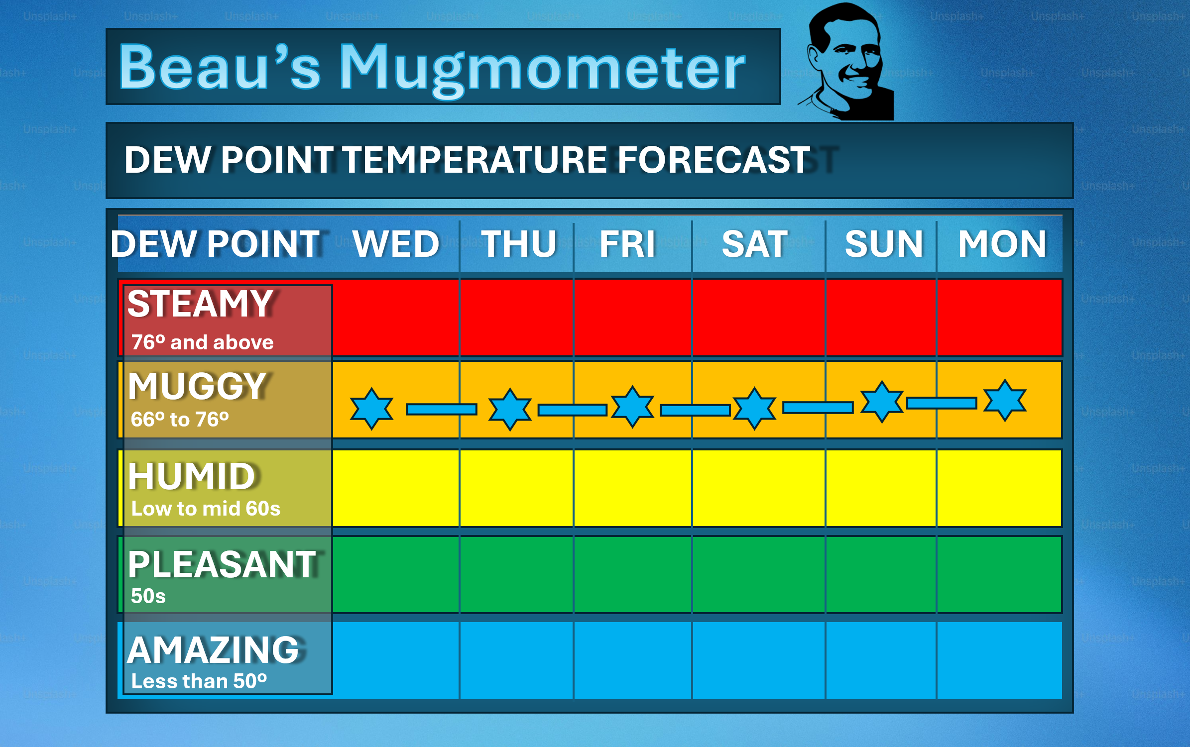 Here is my mugmometer. How muggy will it feel? It is going to be sticky outside. Muggy.