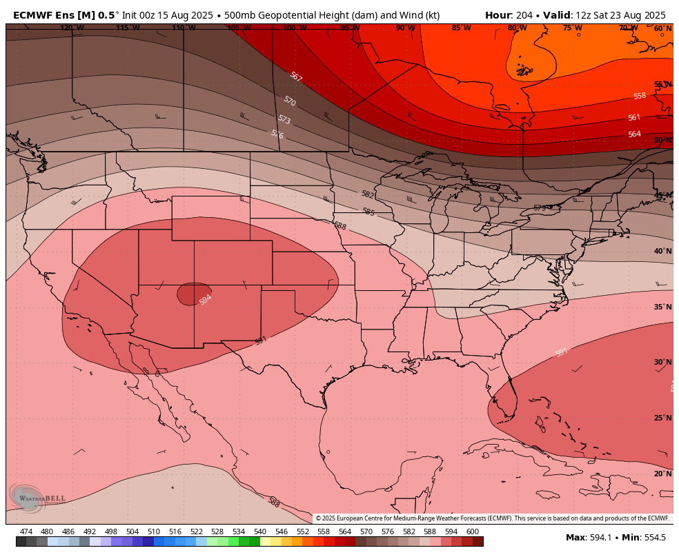 This is a fairly typical late summer pattern.  Temperatures will be several degrees above seasonal averages.