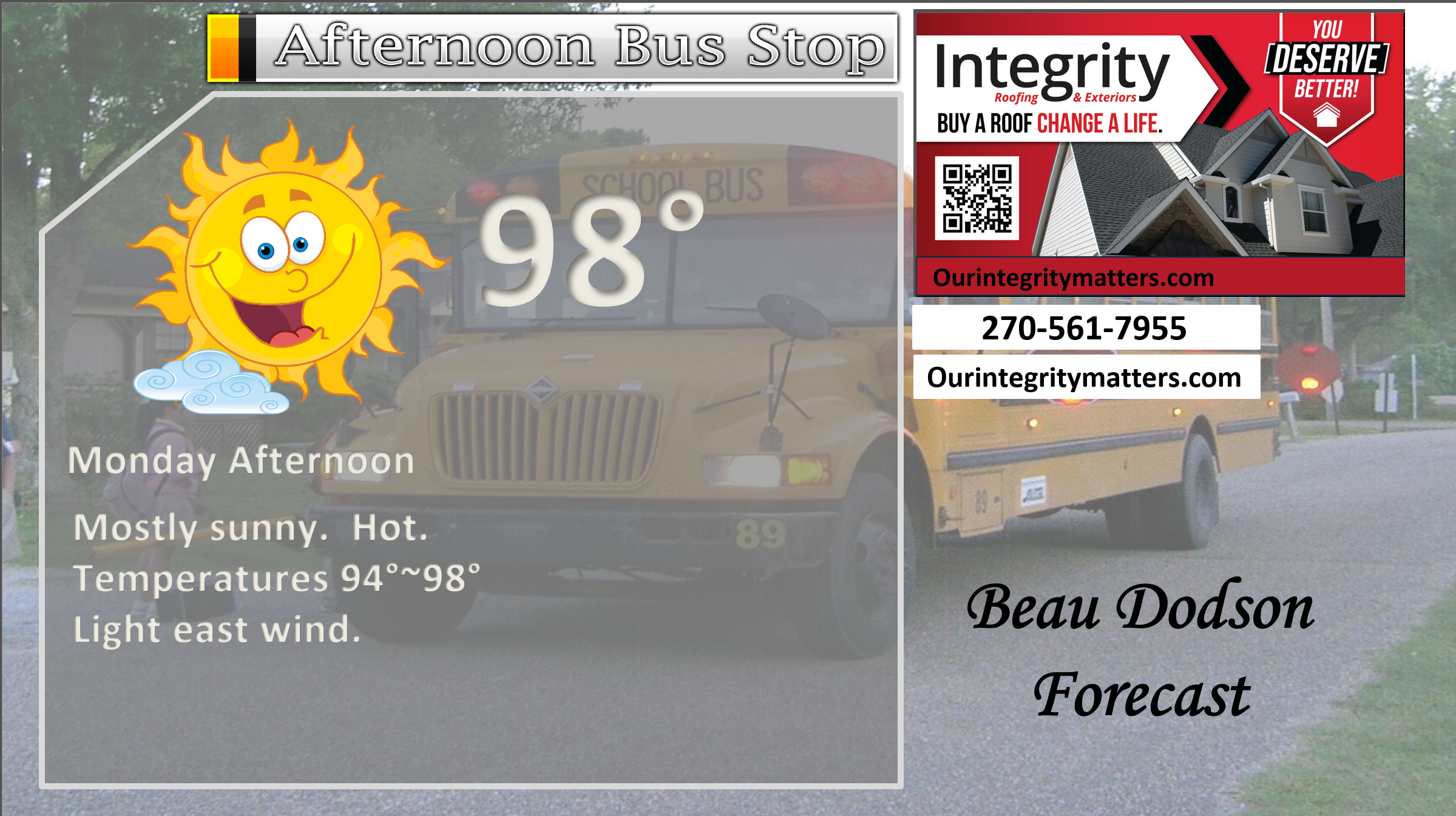 ⛈️ Roof or gutter damage from recent storms? Today’s weather is sponsored by Integrity Roofing. Check out their website at this link https://www.ourintegritymatters.com/