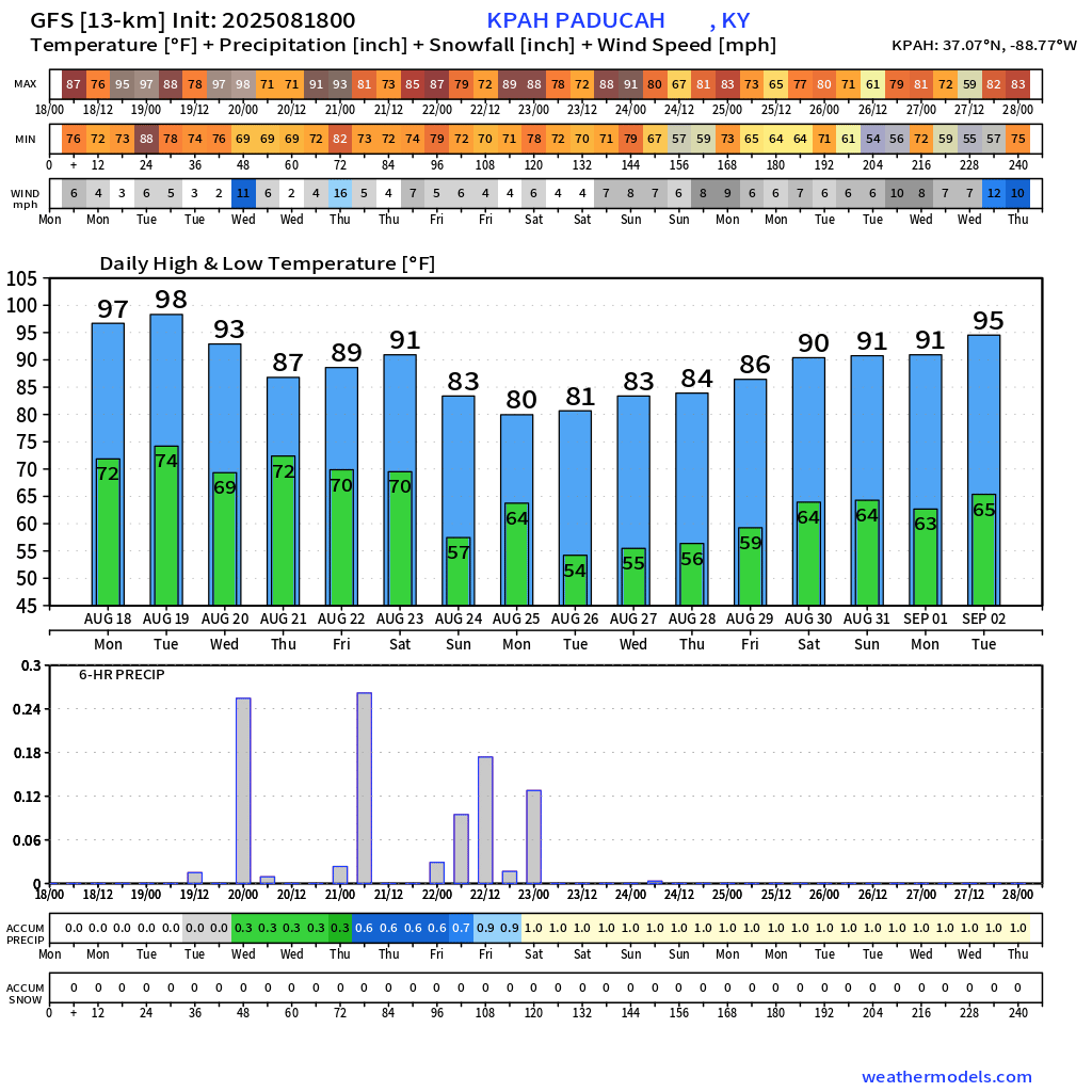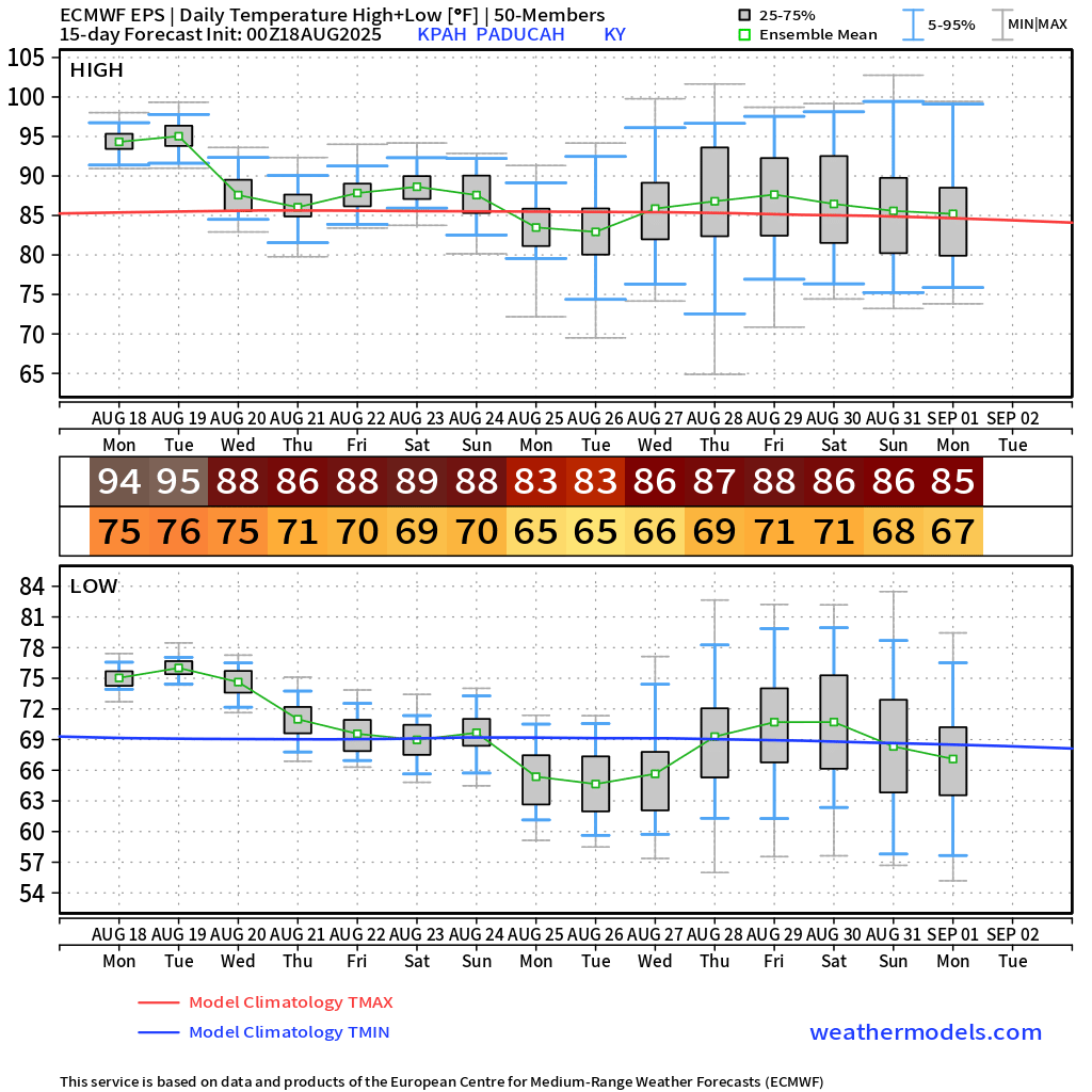 Here is what the EC and GEFS ensembles are showing for temperatures next week. I chose Paducah as a central location. Temperatures in the region will be similar.