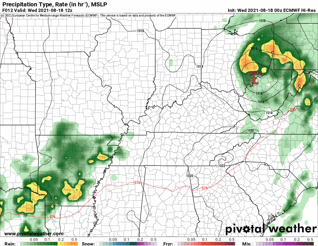 What is the chance of precipitation? MO Bootheel ~ 60% / the rest of SE MO ~ 50% / I-64 Corridor South IL ~ 40% / the rest of South IL ~ 60% / West KY ~ 60% / NW KY (near Indiana border) ~ 60% / NW TN ~ 60%