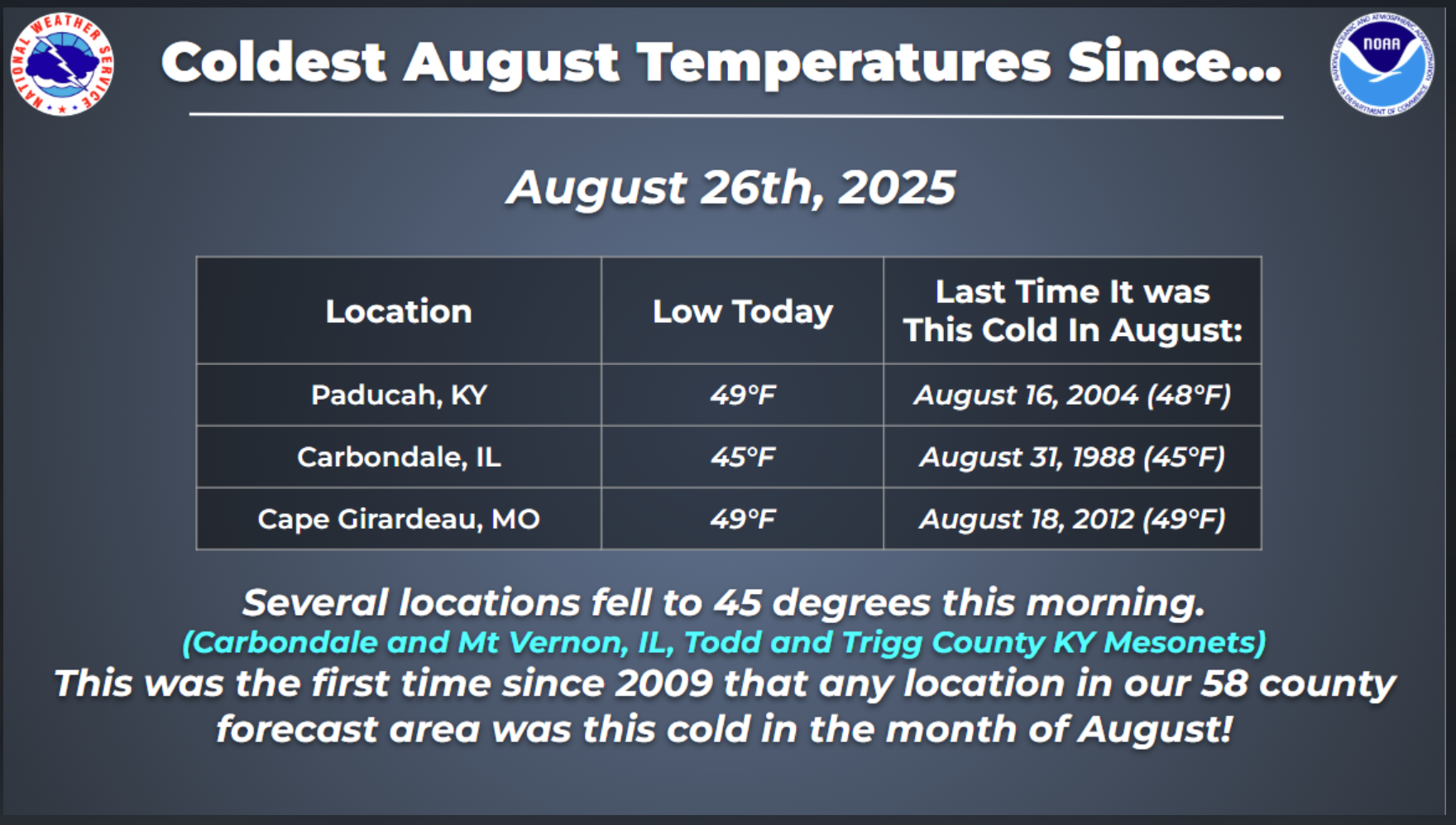 We are waking up to cool temperatures. Again, this is more like late September than late August.