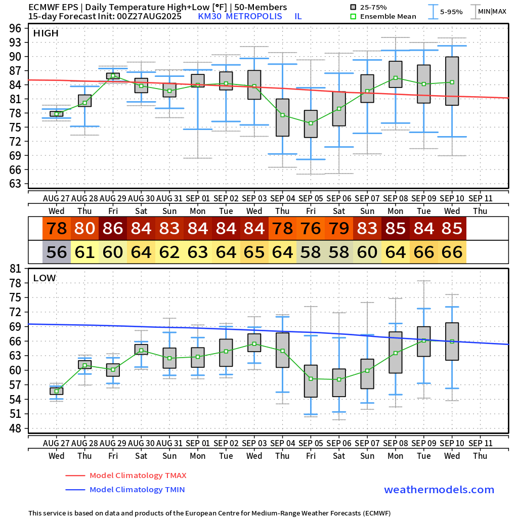 The 15-day EC model temperature outlook is nice. The worst of the summer heat is likely behind us.
