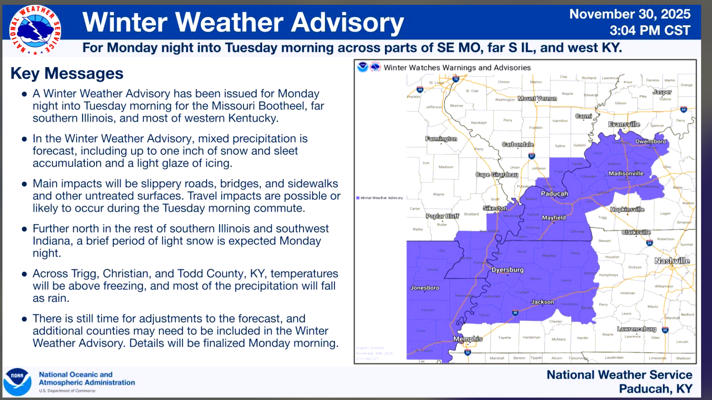 This is from the Memphis, Tennessee, NWS. This shows you the Bootheel and northwest Tennessee advisory