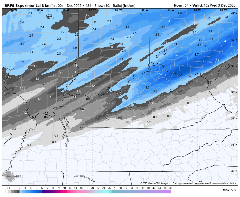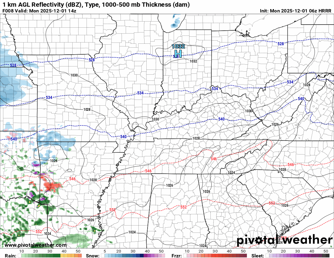 Rain may linger a bit longer along the Kentucky/Tennessee border. Then, with time, it will change to a mix there, as well.