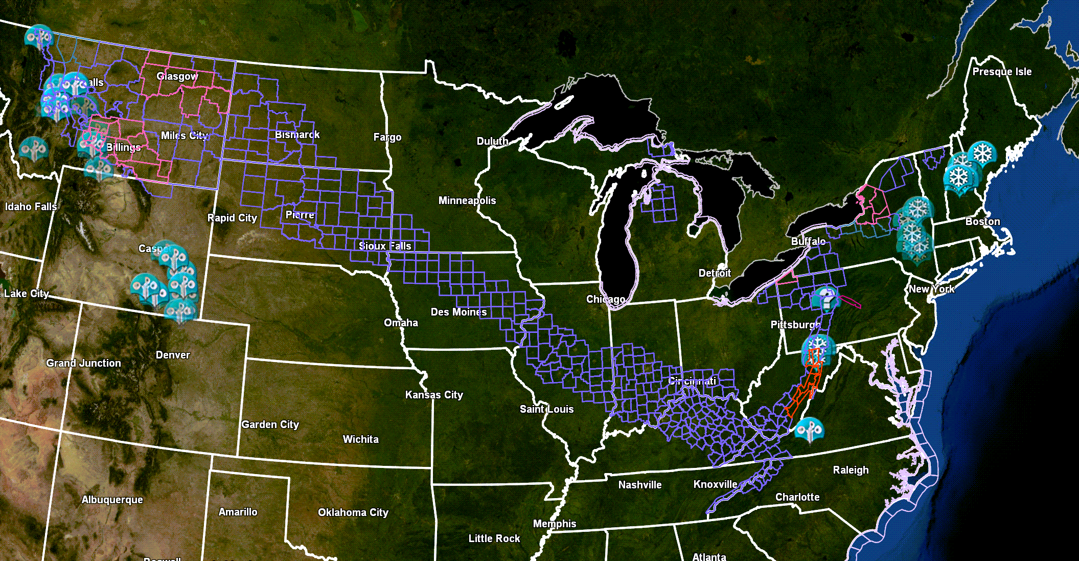 Check out the winter storm warnings and winter weather advisories on this morning’s weather map.