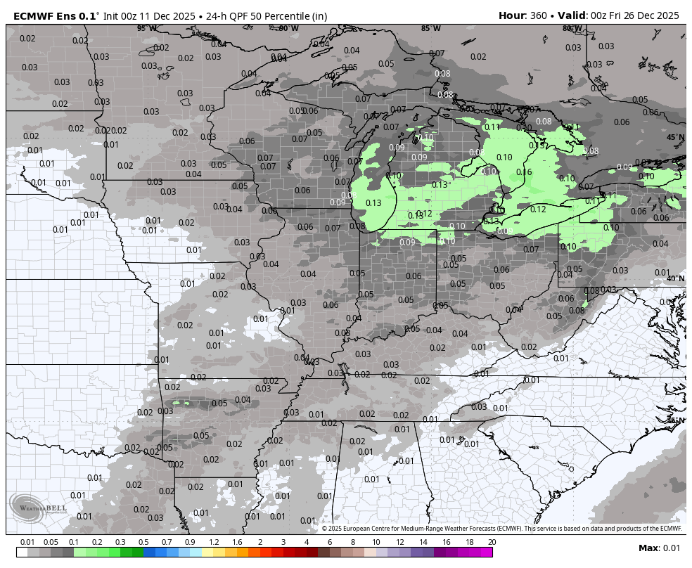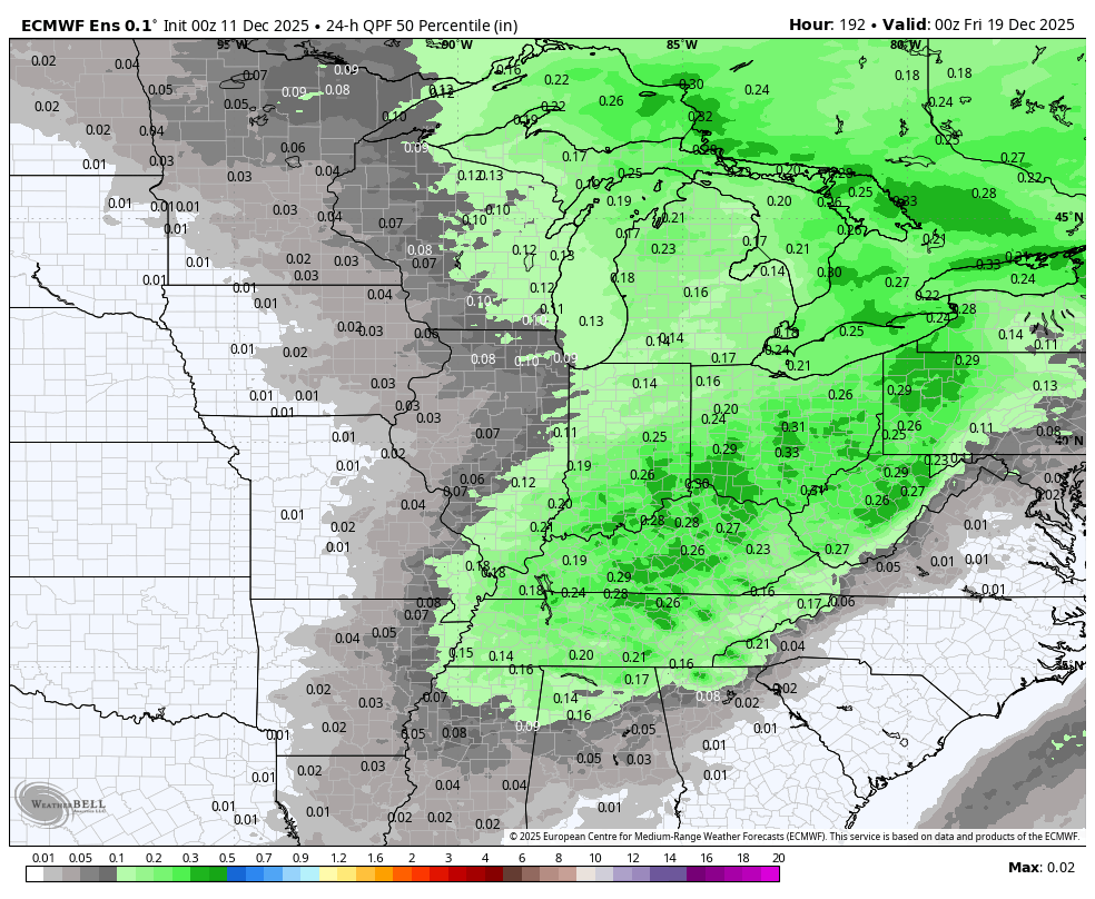 Average precipitation during this time period ranges from 1.00″ to 1.25″