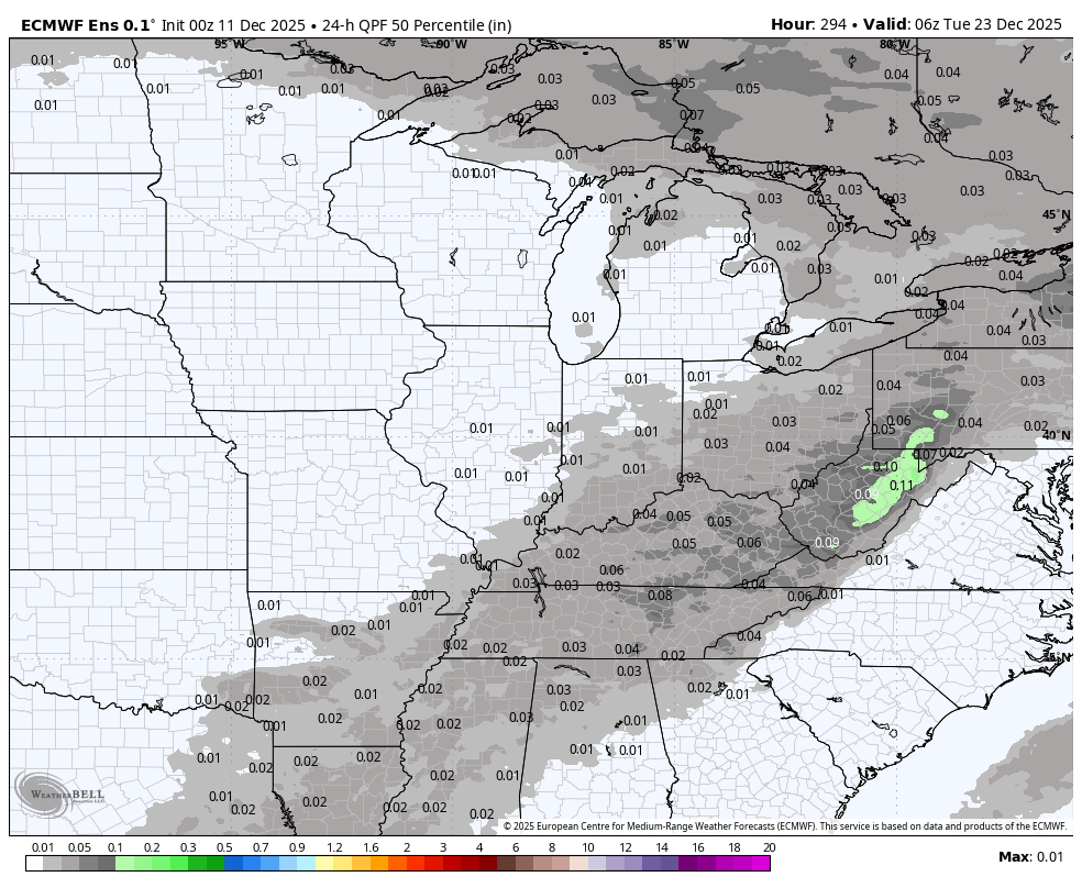 Our mostly quiet weather continues. There are no significant precipitation events in the forecast. There are, however, some light ones.