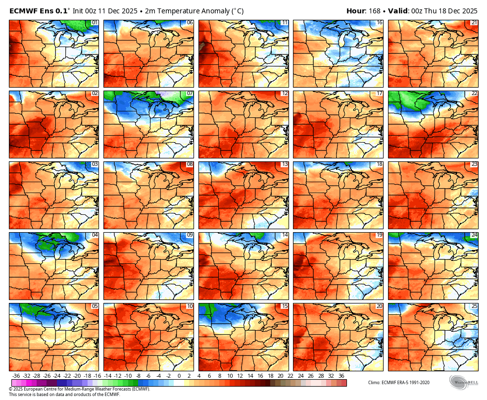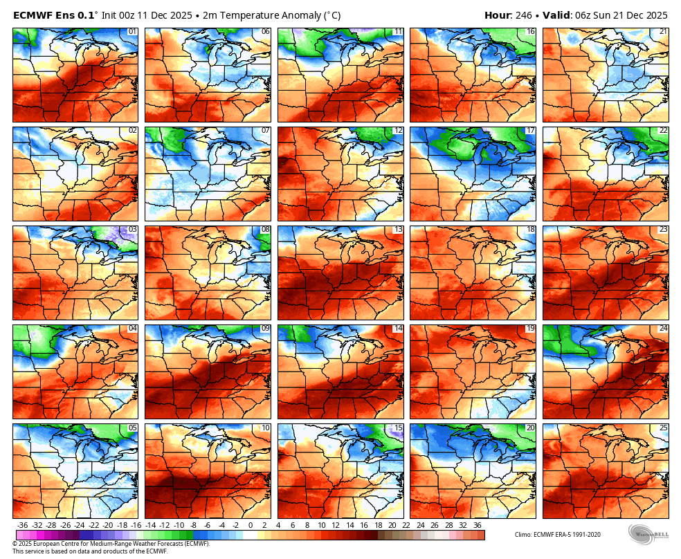 Here is the forecast for December 18th. A lot of orange and red. That indicates above-average temperatures.