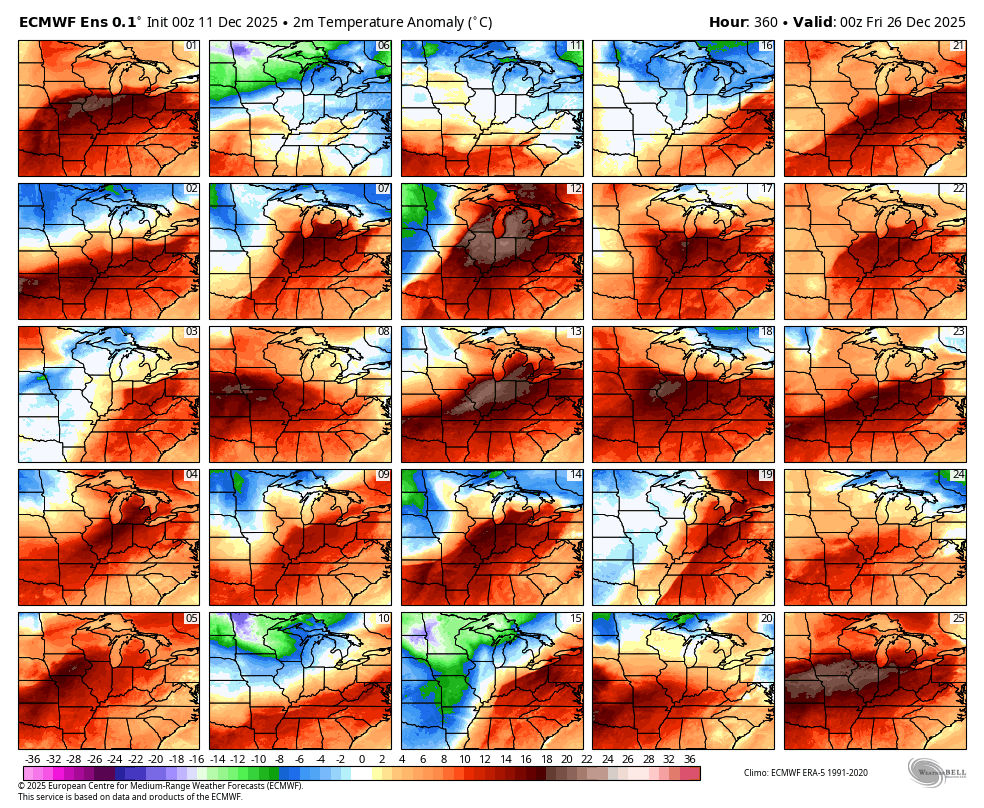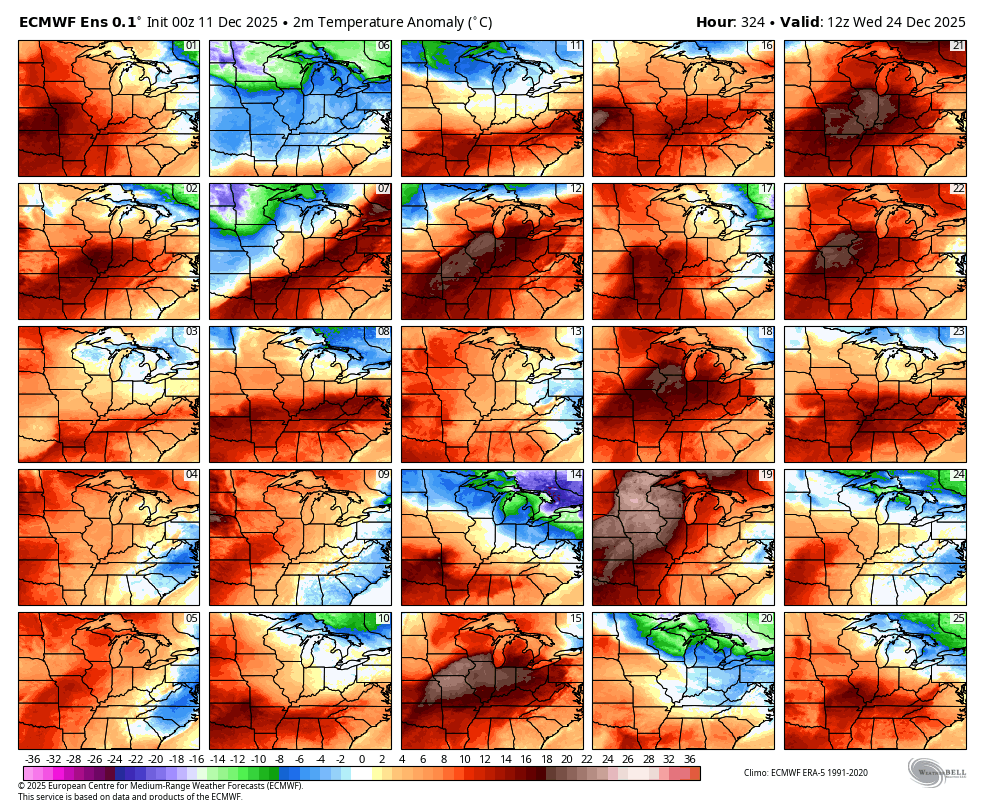 Here is December 25th. Again, a lot of orange and red. Above-average temperatures.