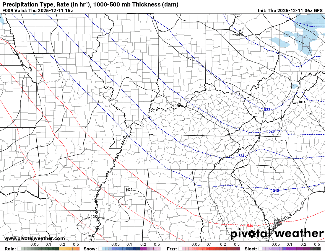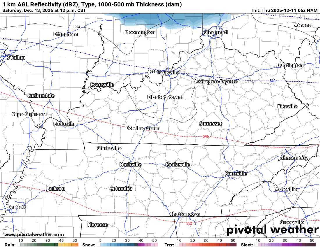 The blue represents snow. This is for Saturday afternoon and evening. I will monitor trends. If it trends a bit farther south southwest, then perhaps portions of our region will receive a little bit of snow.